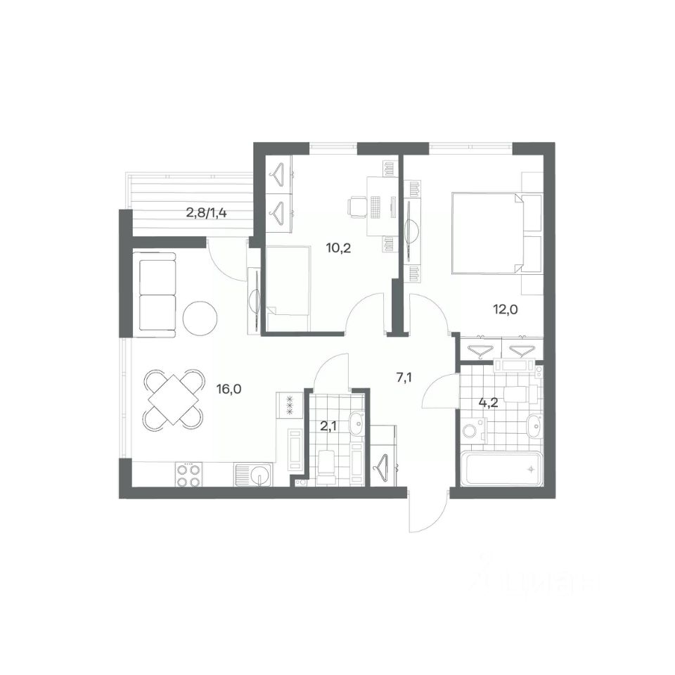 Продается квартира площадью 53 м² на 3 этаже 1 секции в Гагарина 30 от компании ГК ''ТРЕСТ''. Площадь кухни 16 м². Жилой комплекс комфорт-класса ''Гагарина 30'' расположен в Ленинградском районе Калининграда на улице Юрия Гагарина. Жилой комплекс включает в себя три корпуса высотой 9-18 этажей. Срок сдачи намечен на 1 квартал 2028 года.
