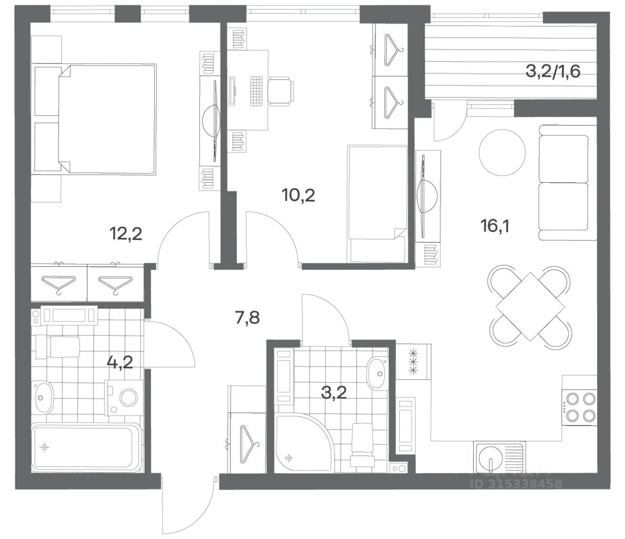 Продается квартира площадью 55.3 м² на 4 этаже 1 секции в Гагарина 30 от компании ГК ''ТРЕСТ''. Площадь кухни 16.1 м². Жилой комплекс комфорт-класса ''Гагарина 30'' расположен в Ленинградском районе Калининграда на улице Юрия Гагарина. Жилой комплекс включает в себя три корпуса высотой 9-18 этажей. Срок сдачи намечен на 1 квартал 2028 года.