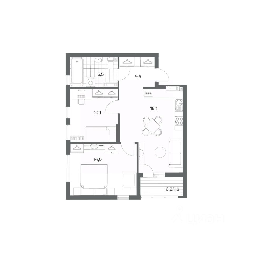 Продается квартира площадью 54.7 м² на 3 этаже 1 секции в Гагарина 30 от компании ГК ''ТРЕСТ''. Площадь кухни 19.1 м². Жилой комплекс комфорт-класса ''Гагарина 30'' расположен в Ленинградском районе Калининграда на улице Юрия Гагарина. Жилой комплекс включает в себя три корпуса высотой 9-18 этажей. Срок сдачи намечен на 1 квартал 2028 года.
