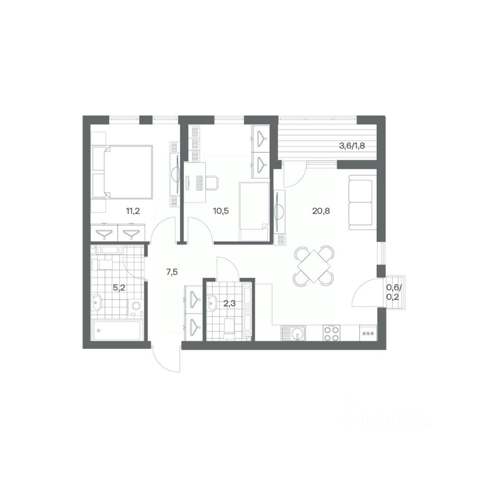 Продается квартира площадью 59.5 м² на 8 этаже 4 секции в Гагарина 30 от компании ГК ''ТРЕСТ''. Площадь кухни 20.8 м². Жилой комплекс комфорт-класса ''Гагарина 30'' расположен в Ленинградском районе Калининграда на улице Юрия Гагарина. Жилой комплекс включает в себя три корпуса высотой 9-18 этажей. Срок сдачи намечен на 1 квартал 2028 года.