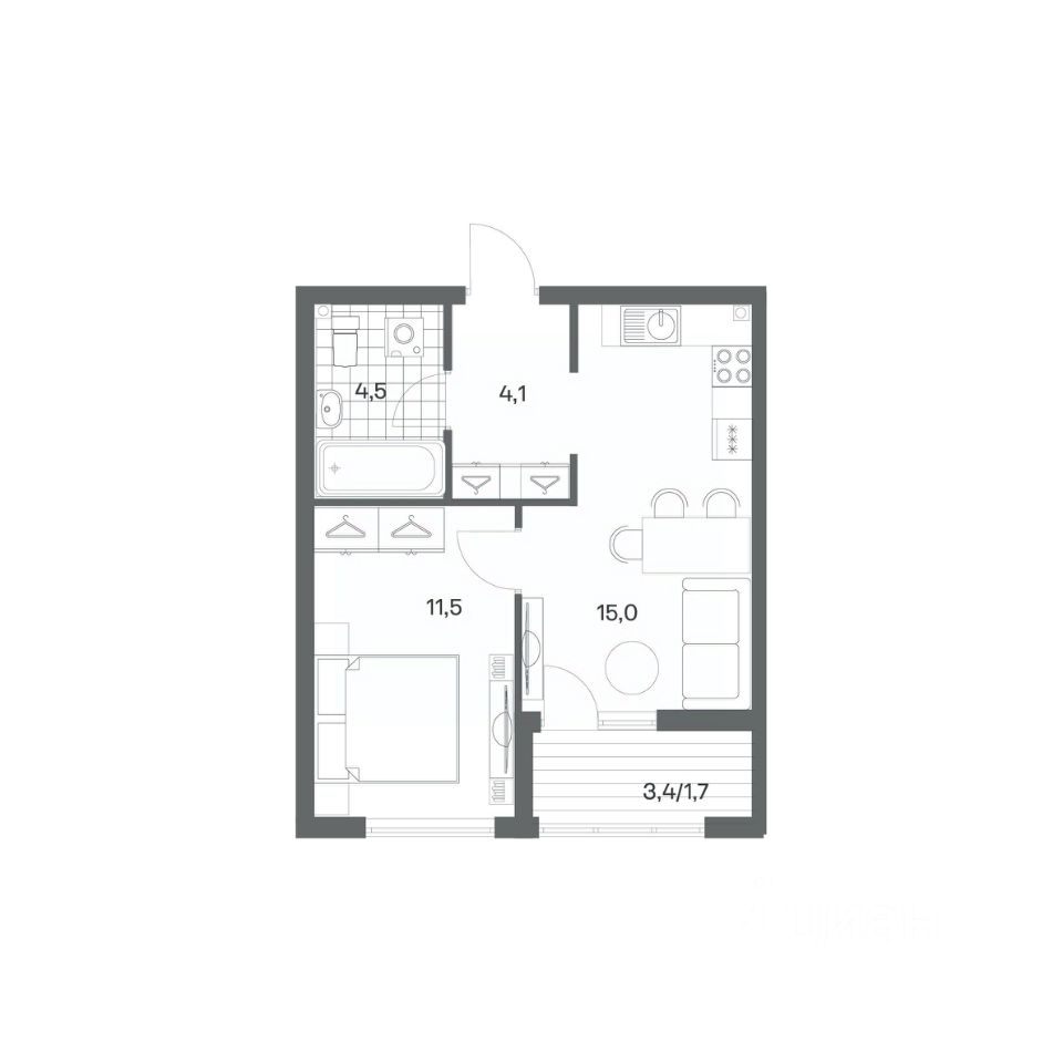 Продается квартира площадью 36.8 м² на 1 этаже 2 секции в Гагарина 30 от компании ГК ''ТРЕСТ''. Площадь кухни 15 м². Жилой комплекс комфорт-класса ''Гагарина 30'' расположен в Ленинградском районе Калининграда на улице Юрия Гагарина. Жилой комплекс включает в себя три корпуса высотой 9-18 этажей. Срок сдачи намечен на 1 квартал 2028 года.