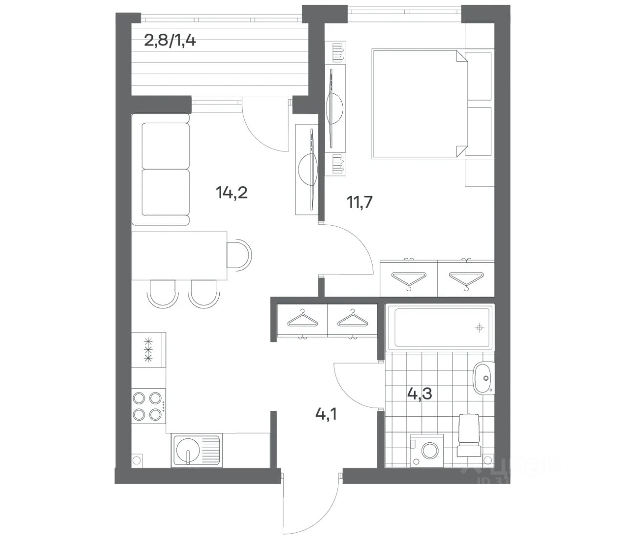 Продается квартира площадью 35.7 м² на 1 этаже 3 секции в Гагарина 30 от компании ГК ''ТРЕСТ''. Площадь кухни 14.2 м². Жилой комплекс комфорт-класса ''Гагарина 30'' расположен в Ленинградском районе Калининграда на улице Юрия Гагарина. Жилой комплекс включает в себя три корпуса высотой 9-18 этажей. Срок сдачи намечен на 1 квартал 2028 года.