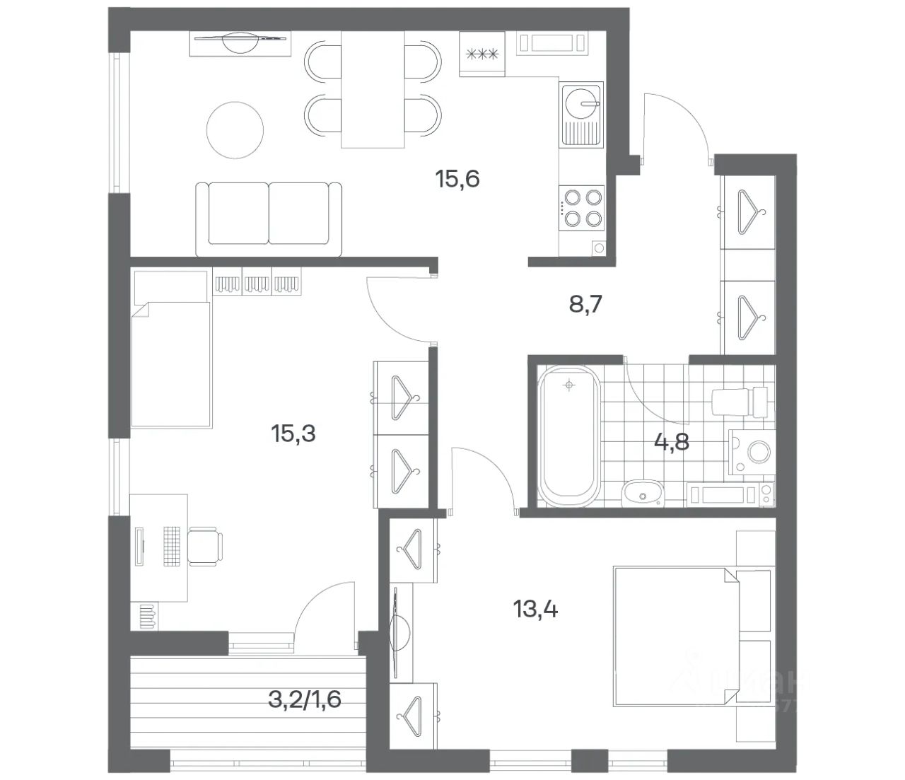 Продается квартира площадью 59.4 м² на 4 этаже 5 секции в Гагарина 30 от компании ГК ''ТРЕСТ''. Площадь кухни 15.6 м². Жилой комплекс комфорт-класса ''Гагарина 30'' расположен в Ленинградском районе Калининграда на улице Юрия Гагарина. Жилой комплекс включает в себя три корпуса высотой 9-18 этажей. Срок сдачи намечен на 1 квартал 2028 года.