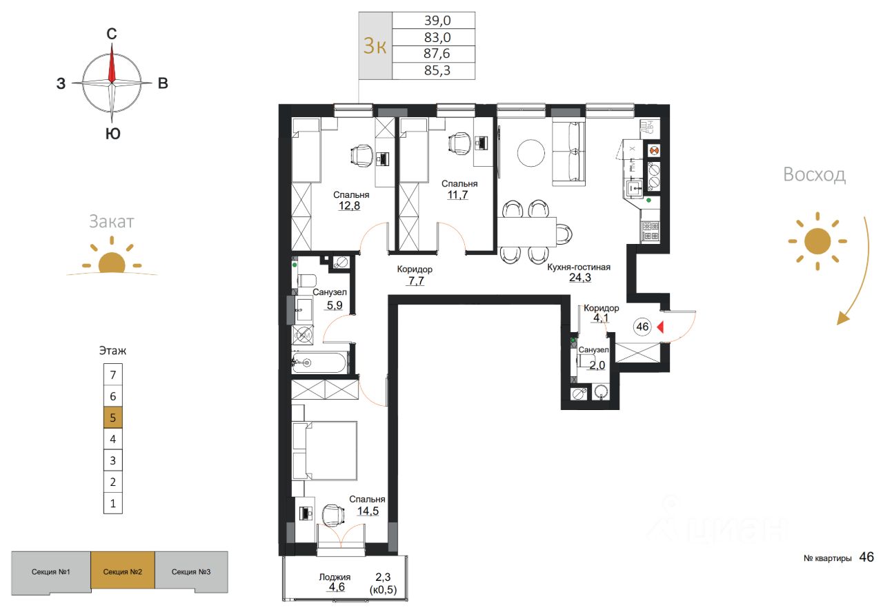 Общая площадь85,3 м2