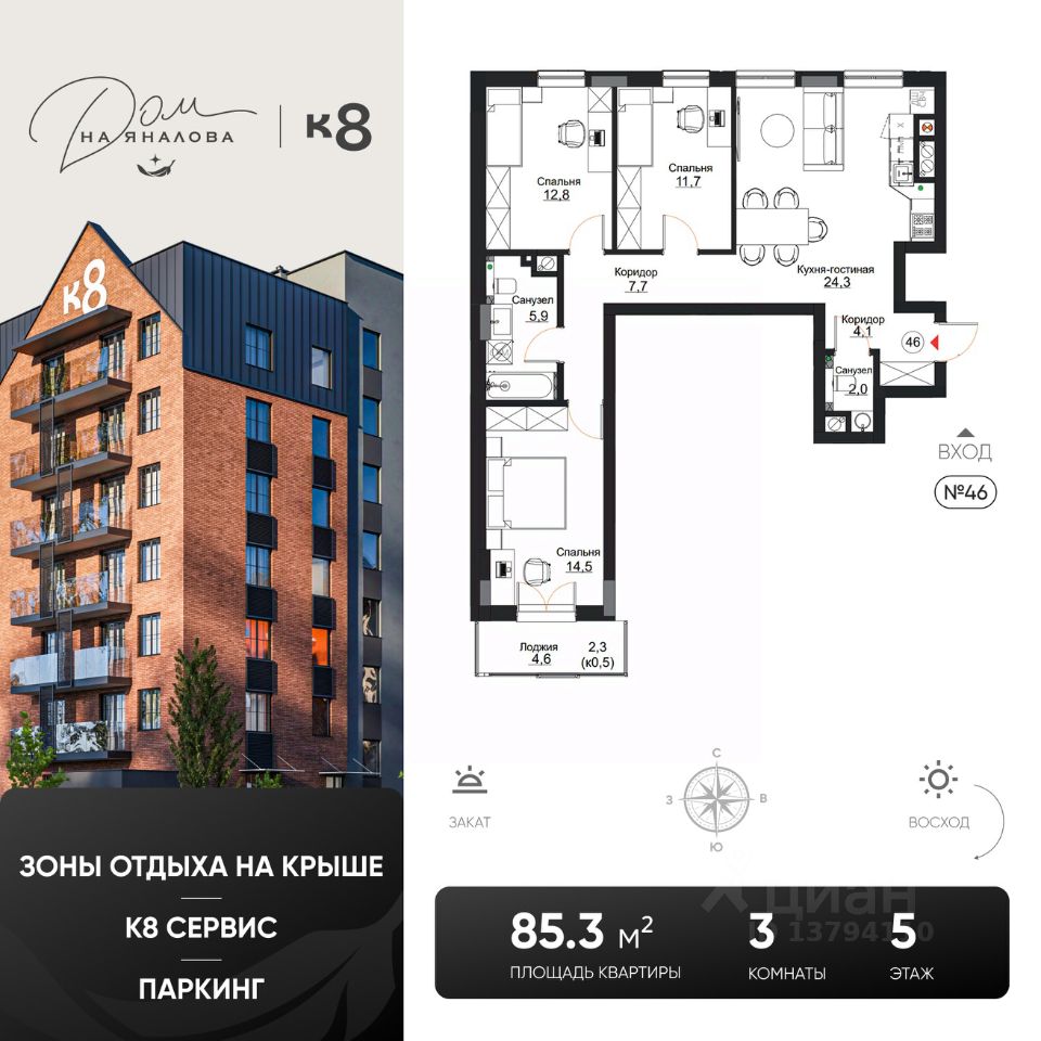 Клубный дом на Яналова это новый стандарт жизни в малоквартирном клубном доме в престижном районе Калининграда. Уникальное пространство, каждая деталь которого продумана до мелочей: функционал дома работает на качество вашей жизни, подчеркивает ваш статус и обеспечивает новый уровень комфорта и технологий. Срок сдачи — 3 квартал 2026 года Уникальные преимущества проекта: Лаунж-зоны с камином и библиотекой, хамам и русская баня, место для йоги и лежаков, площадка для наблюдения за звездами на эксплуатируемой кровле Фитнес-зал в доме Коворкинг, кофе-поинт Воркаут-зона для активного отдыха, игровая площадка для детей Клубный дом (84 квартиры) Подземный паркинг, лапомойка для домашних питомцев Авторская подсветка фасадов Озеленение территории