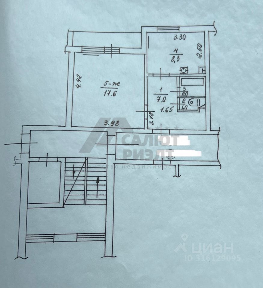Планировка: Комната - 17.6 м2 Коридор - 7 м2 Кухня - 8,3 м2 Ванная комната - 2 м2 Туалет - 1 м2 Балкон - 3 м2 Вся мебель и техника остается!!! Есть подвал в пользование!!!