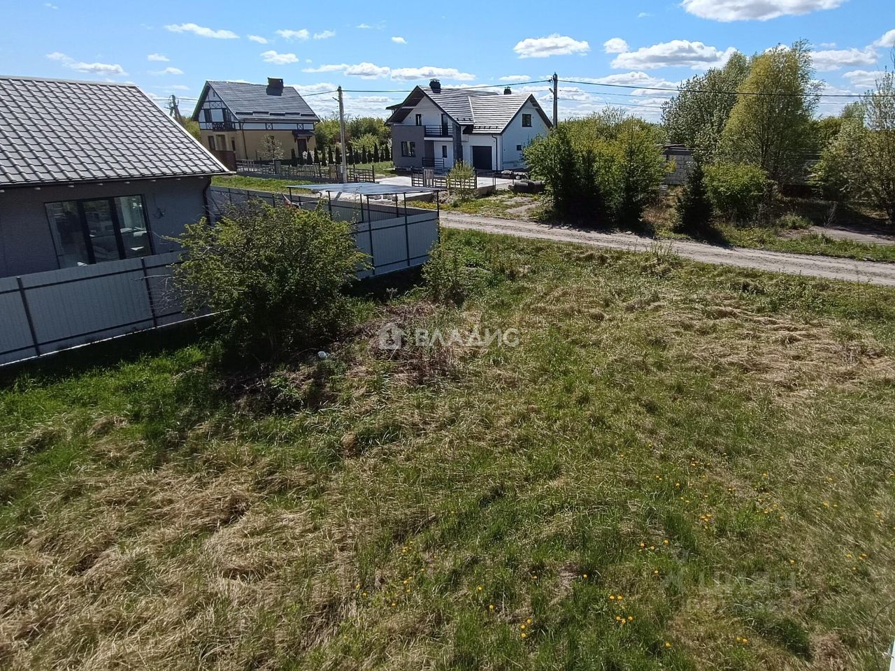 Участок угловой, ровный, сухой, поднят и отсыпан, огорожен с двух сторон.