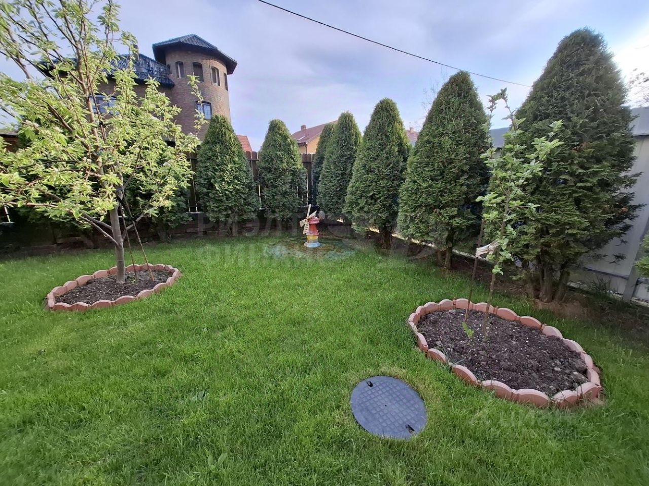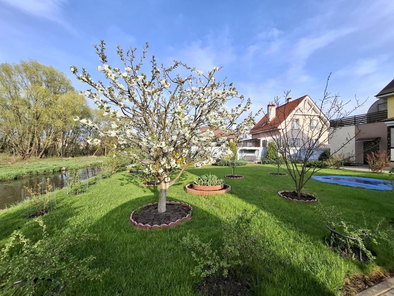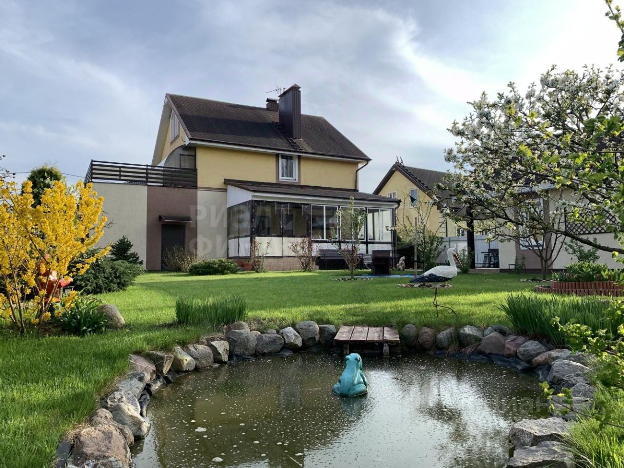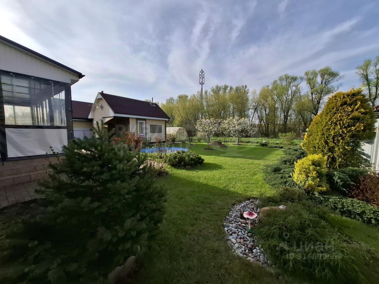 На участке: баня 24 кв.м (4 помещения) и зона барбекю, выход на речку - индивидуальная рыбалка, пруд с фонтаном, плодовые деревья, газон, цветы, благоустроенная огороженная территория, участок в собственности.