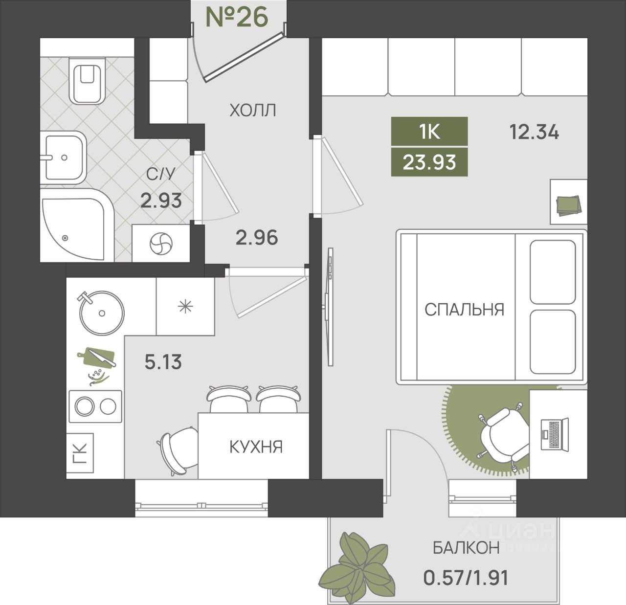 Общая площадь23,93 м2