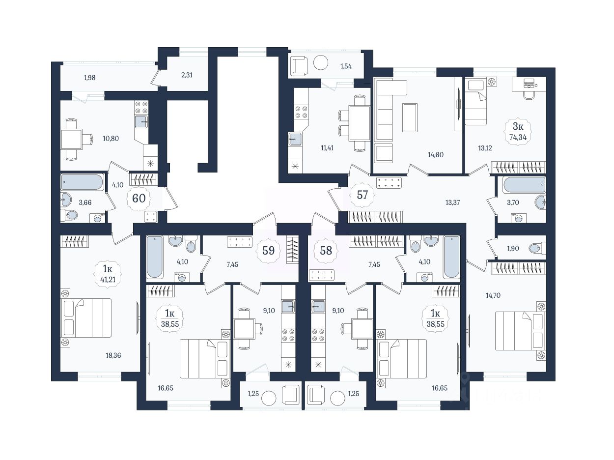 Общая площадь74,34 м2