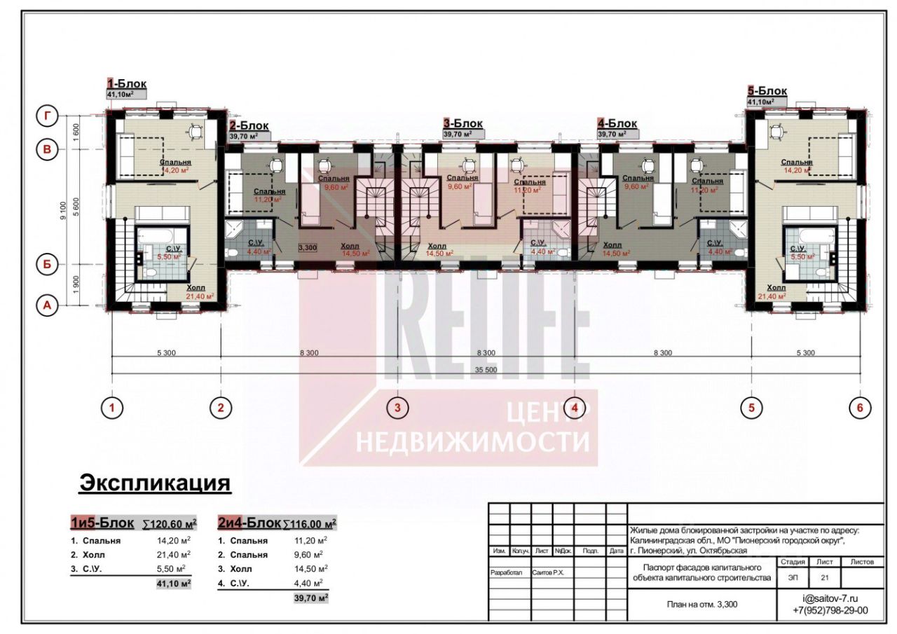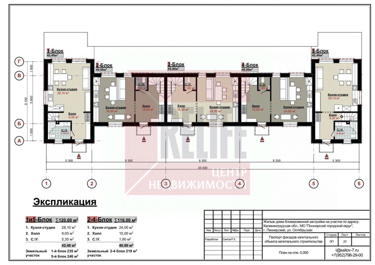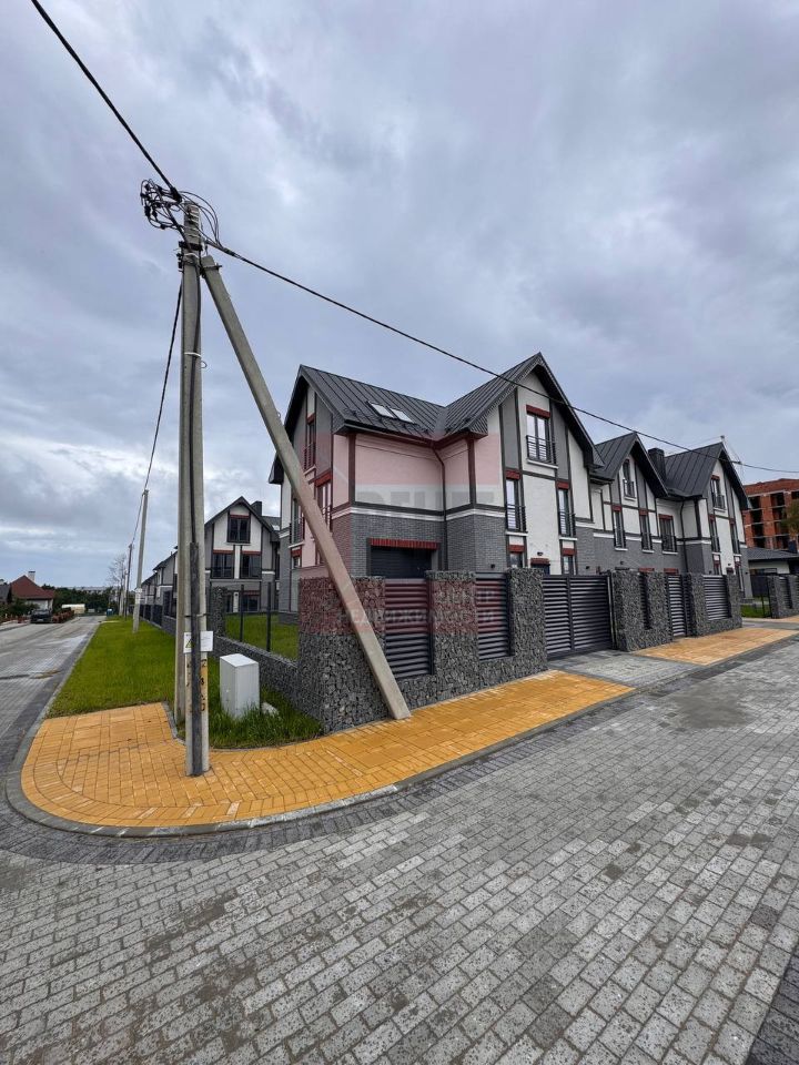 Таунхаус расположен на земельном участке 2.54 сотки в собственности. Территория комплекса полностью огорожена, выполнено мощение дорожек и тротуаров, установлено уличное освещение и проведено озеленение. В шаговой доступности вся инфраструктура города и конечно же широченный пляж.