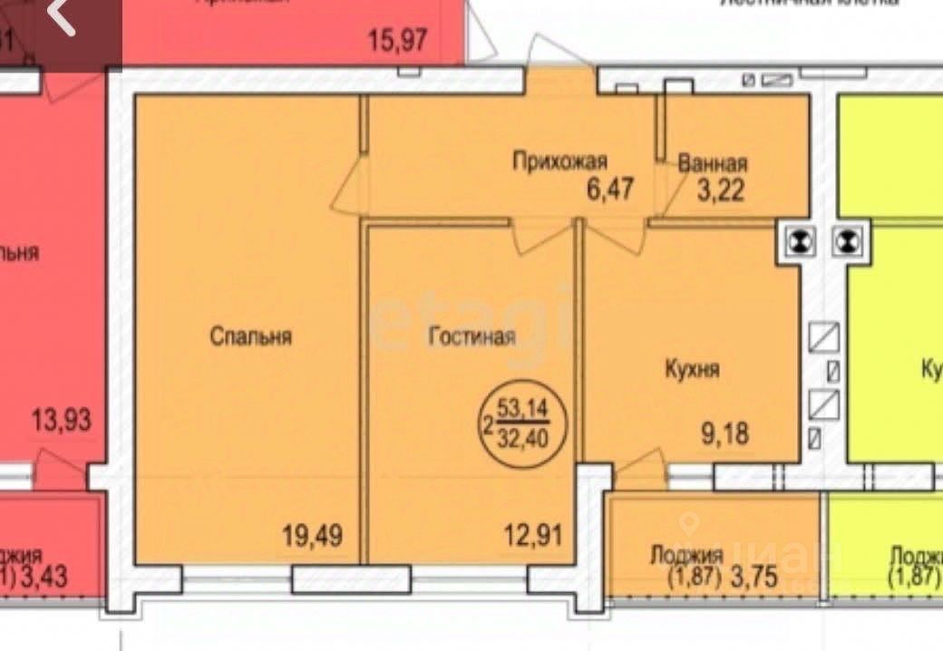 Квартира расположена на 7 этаже 9 этажного дома. Общая площадь- 52,4 кв.м Комнаты изолированные- 19,49 кв.м. и 12,91 кв.м. Кухня 9,18 кв.м.