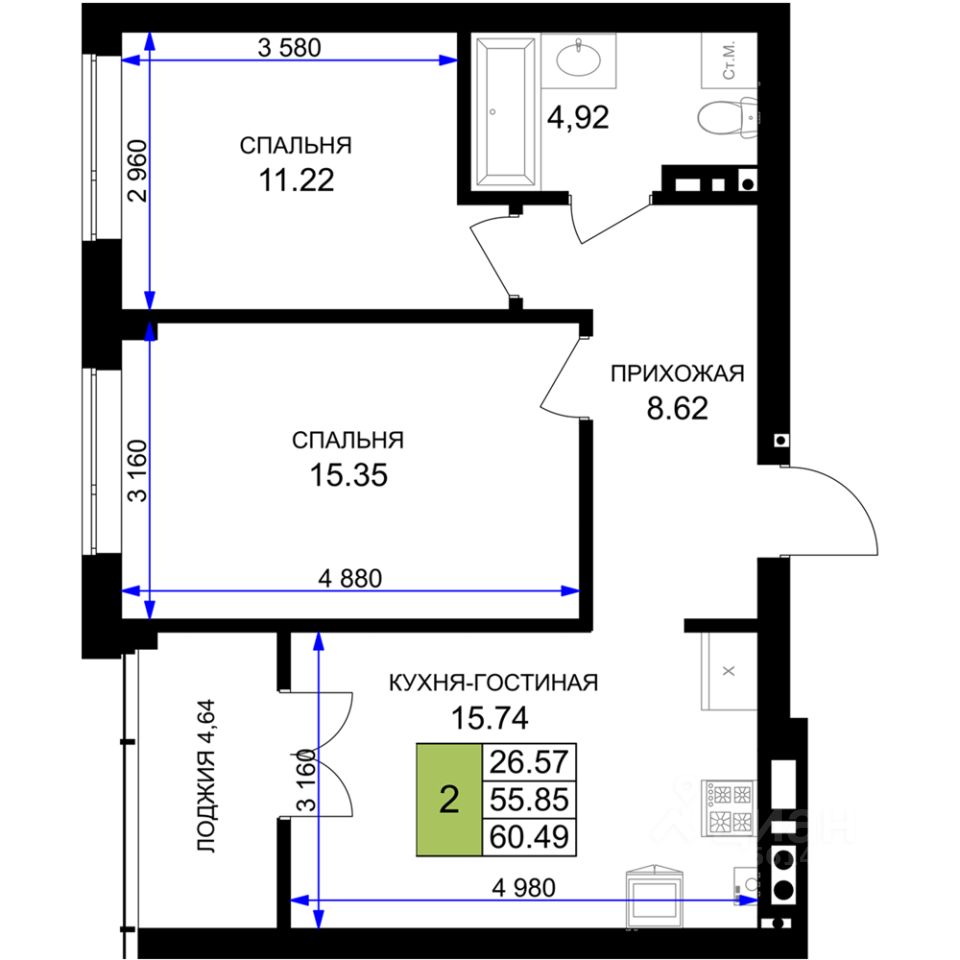 продам 2-к, Героя России Катериничева, 2 корп. 412 894 000 ₽
