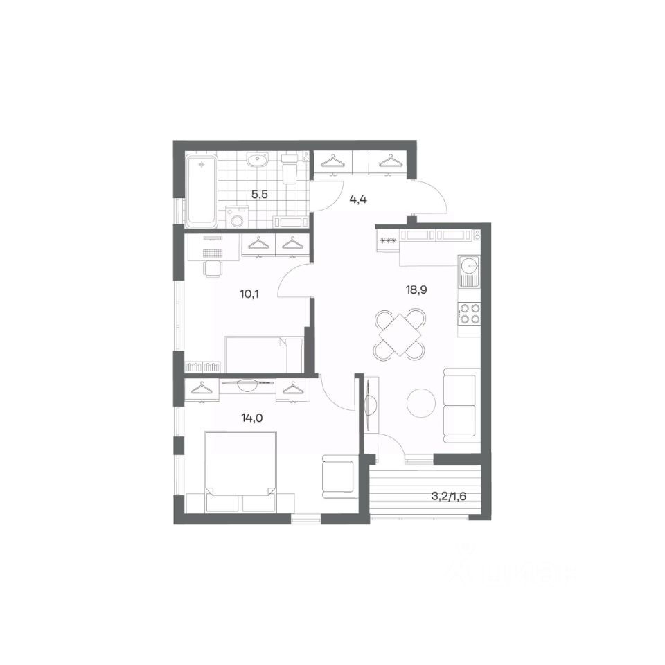 Продается квартира площадью 54.5 м² на 17 этаже 1 секции в Гагарина 30 от компании ГК ''ТРЕСТ''. Площадь кухни 18.9 м². Жилой комплекс комфорт-класса ''Гагарина 30'' расположен в Ленинградском районе Калининграда на улице Юрия Гагарина. Жилой комплекс включает в себя три корпуса высотой 9-18 этажей. Срок сдачи намечен на 1 квартал 2028 года.