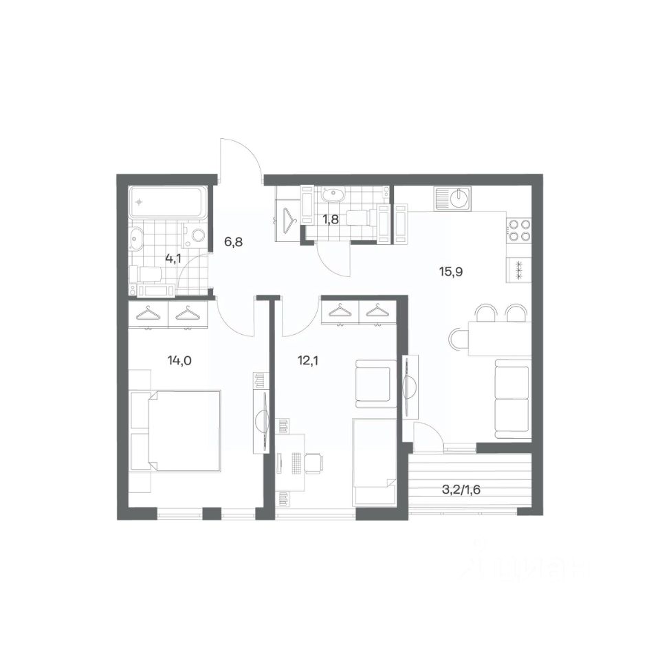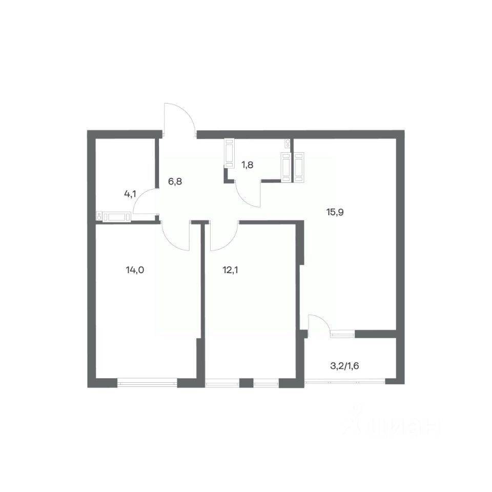 Продается квартира площадью 56.3 м² на 13 этаже 1 секции в Гагарина 30 от компании ГК ''ТРЕСТ''. Площадь кухни 15.9 м². Жилой комплекс комфорт-класса ''Гагарина 30'' расположен в Ленинградском районе Калининграда на улице Юрия Гагарина. Жилой комплекс включает в себя три корпуса высотой 9-18 этажей. Срок сдачи намечен на 1 квартал 2028 года.