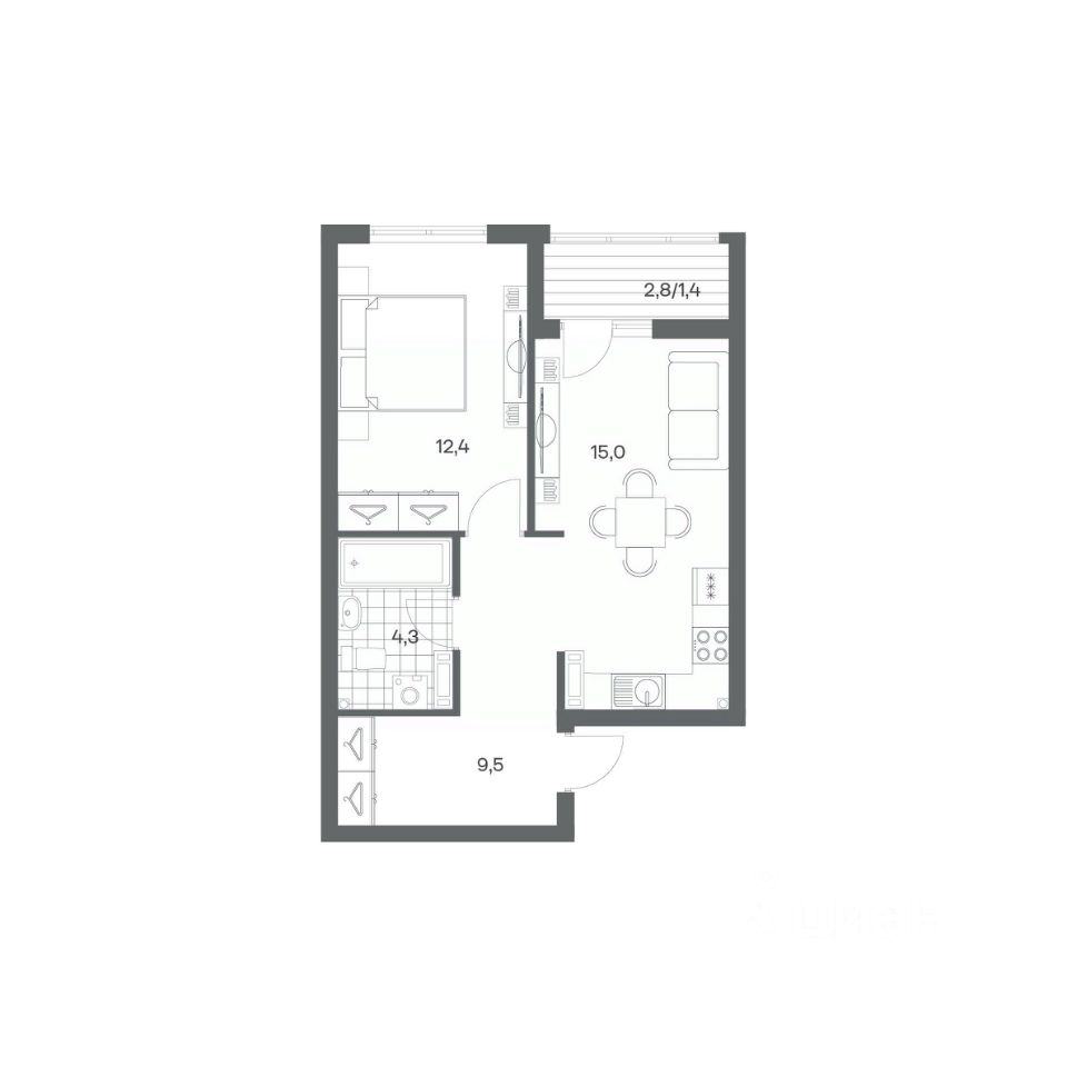 Продается квартира площадью 42.6 м² на 7 этаже 3 секции в Гагарина 30 от компании ГК ''ТРЕСТ''. Площадь кухни 15 м². Жилой комплекс комфорт-класса ''Гагарина 30'' расположен в Ленинградском районе Калининграда на улице Юрия Гагарина. Жилой комплекс включает в себя три корпуса высотой 9-18 этажей. Срок сдачи намечен на 1 квартал 2028 года.