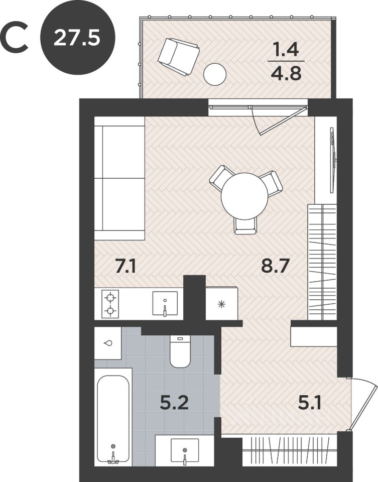 Общая площадь27,5 м2