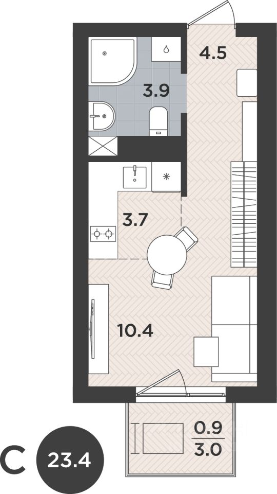 Общая площадь23,4 м2
