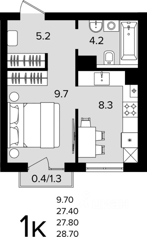 Общая площадь27,8 м2
