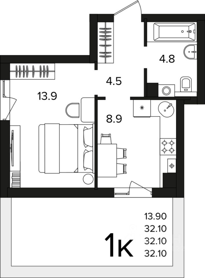 Общая площадь32,1 м2