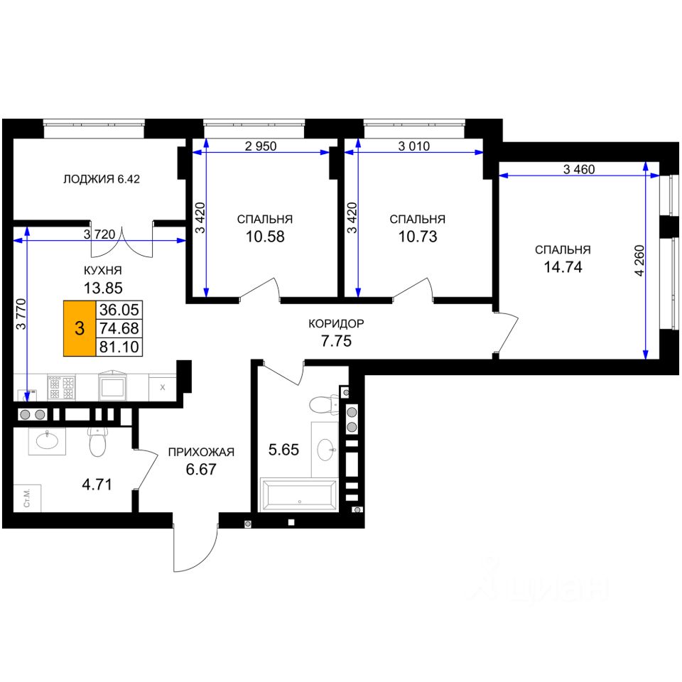 продам 3-к, Гурьевск11 921 700 ₽