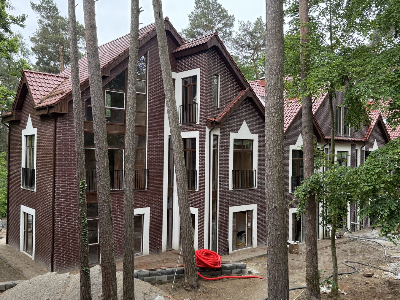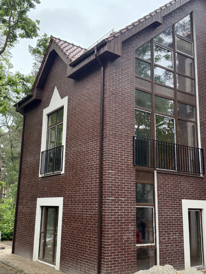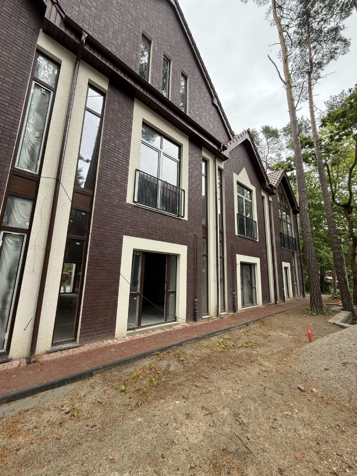 Таунхаус продается в сером ключе. Автономное отопление от двух контурного газового котла, все коммуникации центральные. Строительство ведется из керамоблока.