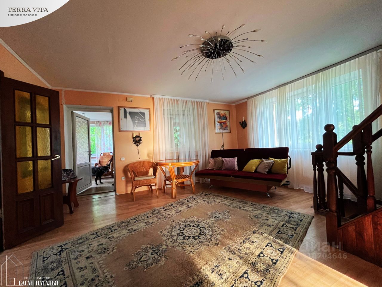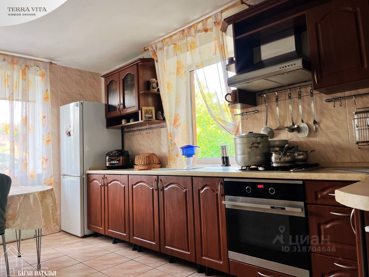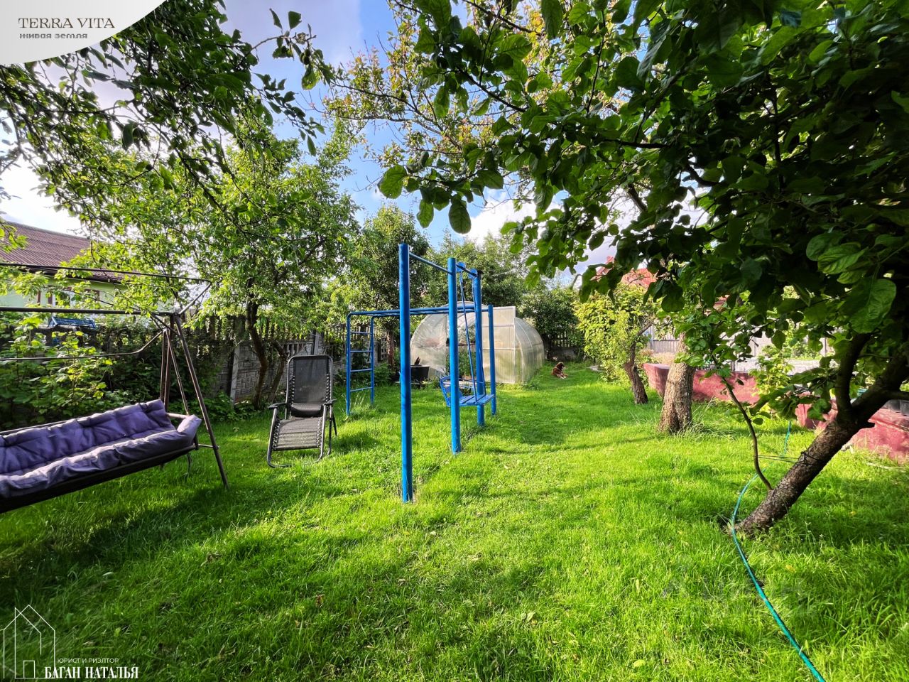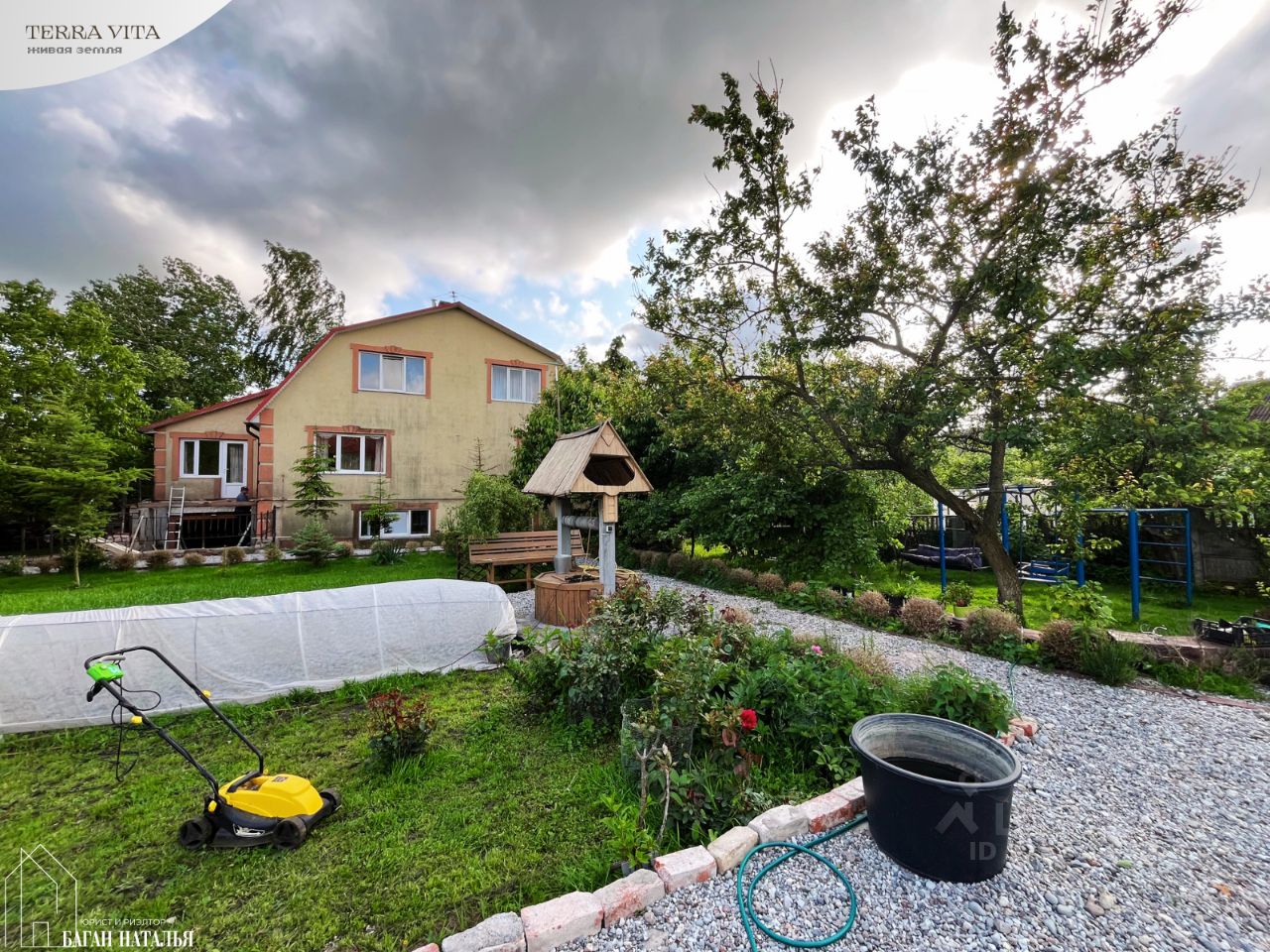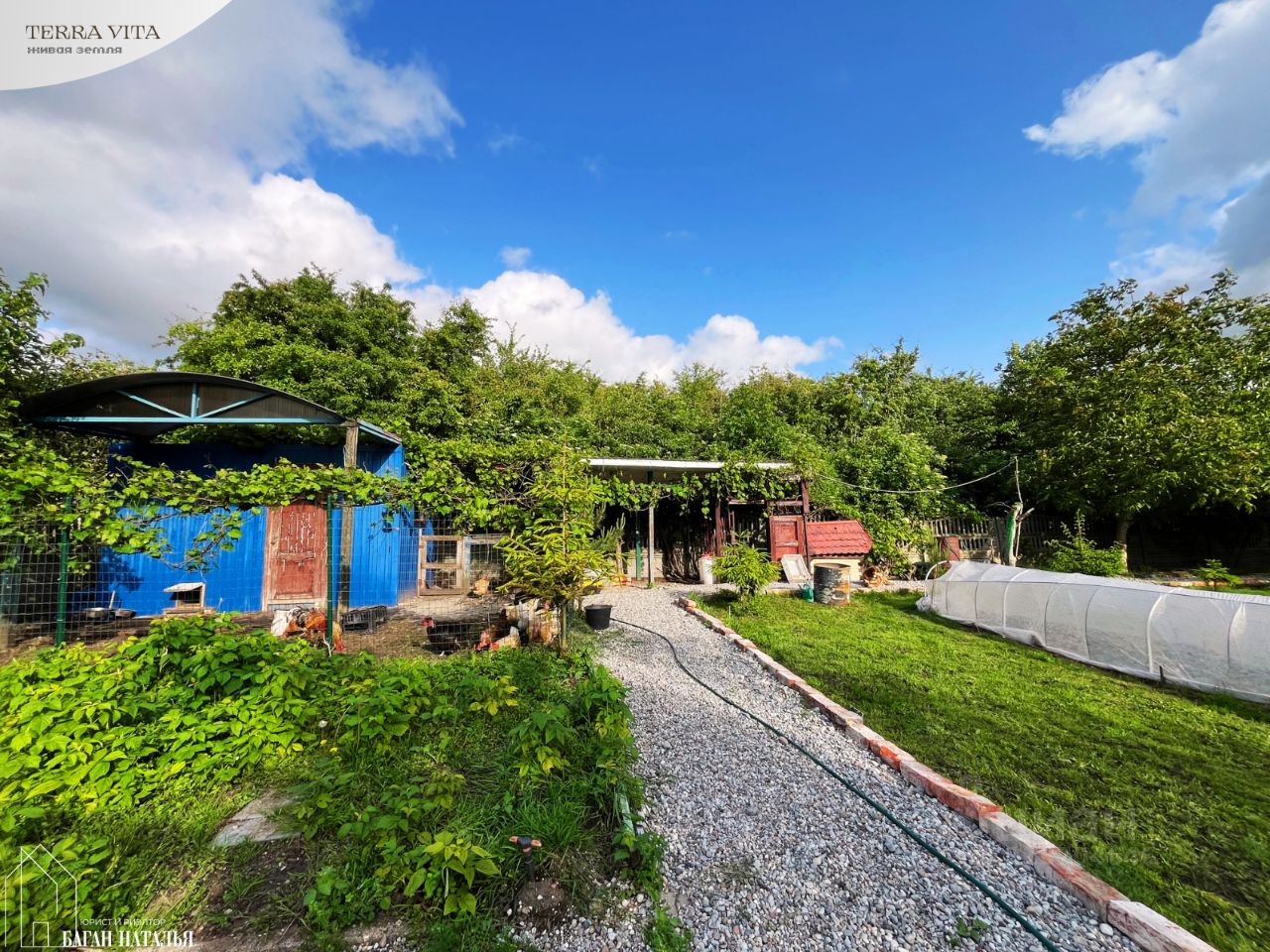 УЧАСТОК: • заехать к дому и на участок можно с двух сторон: с улицы Виноградной и улицы Тепличной • соседи только справа, слева место не пригодное для строительства, с небольшим водоемом и заросшее деревьями и кустарниками, очень живописное • площадь: 12 соток - категория земель: земли населенных пунктов - разрешенное использование: для индивидуального жилищного строительства - кадастровый номер: 39:03:080104:34 • полностью облагорожен и используется: - пруд около беседки перех входом в дом - теплицы, зоны отдыха: мангальная зона с крытой террасой, беседка с небольшим прудом, детские качели и стенка, диван/качели - место жительства кур-несушек и петуха:)) - место жительства прекрасной собаки Платона, он остается в наследство к дому, ему 9 лет, он дворовая собака, в квартиру его не заберешь. На цепи никогда не сидел, спит и отдыхает в вольере, целый день свободно гуляет во дворе. Собака прекрасная, здоровая, смесь овчарки и хаски, подобранная в детстве, полностью адекватная и вменяемая (любит поиграть, косточки и курий корм)), с хороше
