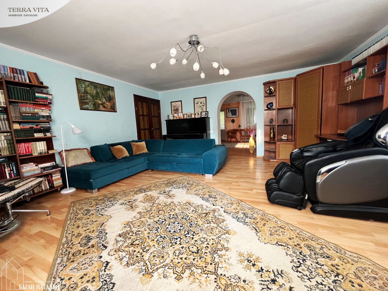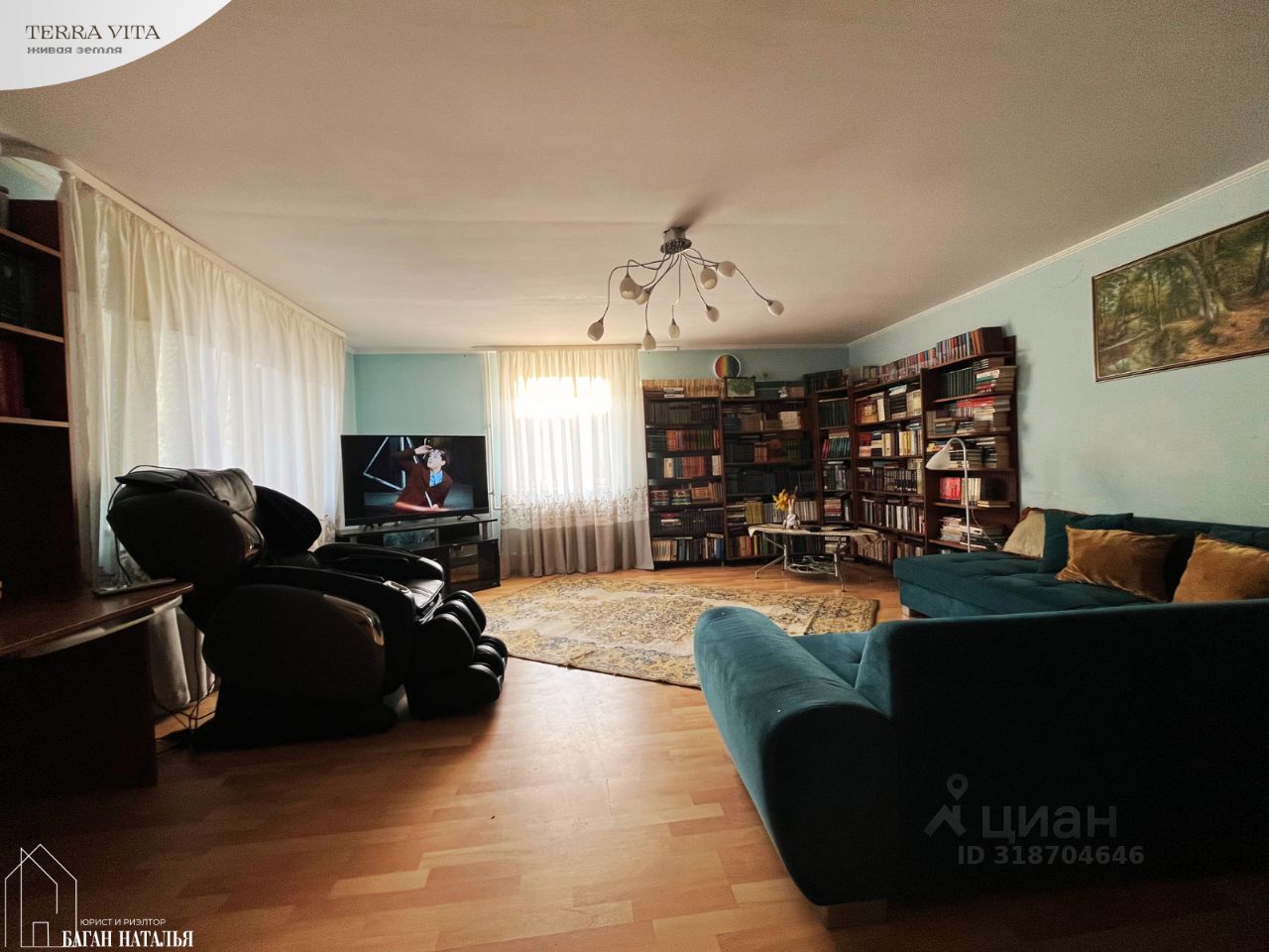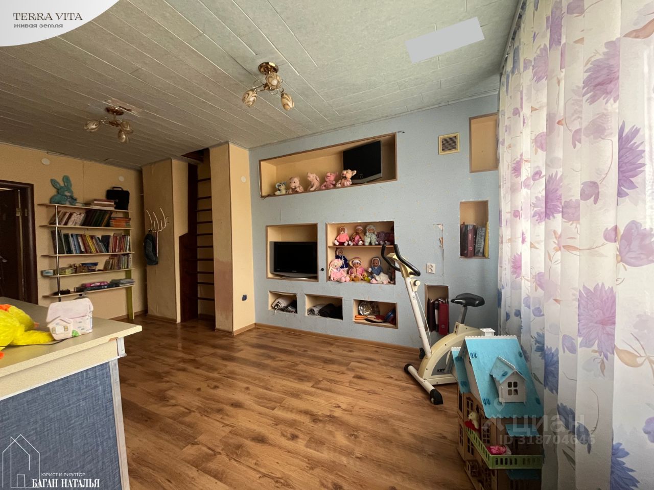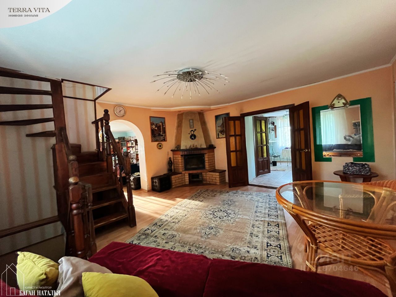 • первый этаж: - высокий, с лестницей в блок из двух изолированных комнат с радиаторами 7.5 и 11 м2 (с выходом на террасу и отдельной лестницей на участок) - гостиная с камином на дровах и лестницами в цоколь и на второй этаж 21.4 м2 - кухня/столовая с барной стойкой 18.5 м2 - с/у с входом из кухни 2.6 м2 - библиотека с входом из гостиной и вторым из холла перед спальней 30.3 м2 - спальня 17.3 м2 - холл перед спальней с гардеробной 5.6 м2