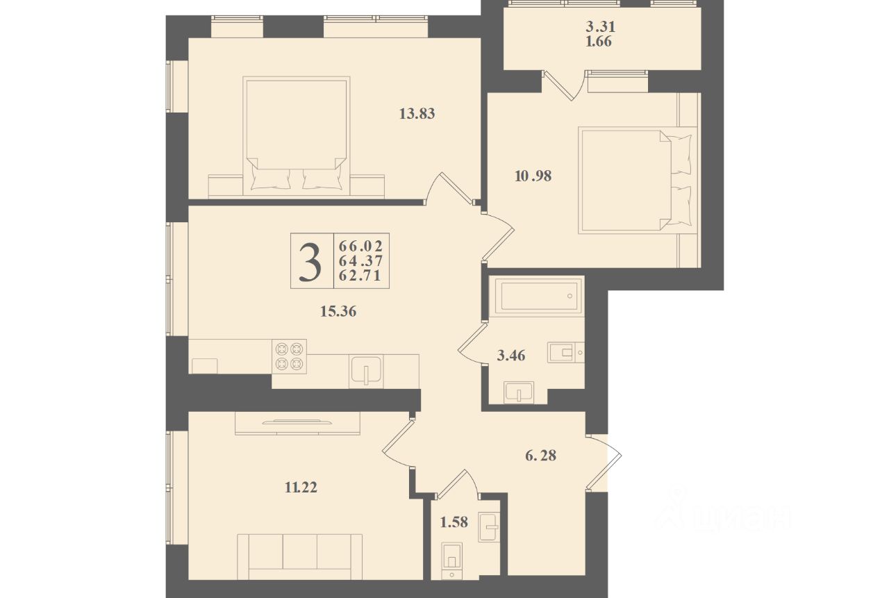 Продаётся 3-комнатная квартира в сданном доме (Пуртова, 1 (Дом 1)), срок сдачи: IV-кв. 2024, общей площадью 66.02 кв.м., на 2 этаже. Малоэтажный жилой дом в экологически чистом районе и непосредственной близости от Балтийского побережья. Современный тёплый кирпичный дом с европейскими планировками и комфортный двор с детской и спортивной площадкой.