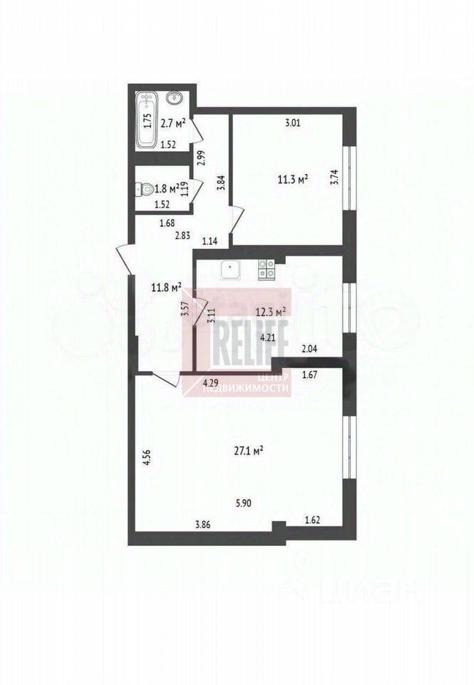О квартире: Общая площадь — 67 кв. м. Это пространство станет вашим уютным гнёздышком. Жилая площадь — 38,4 кв. м. (комнаты — 11,3 кв. м. и просторный зал — 27,1 кв. м.). Кухня — 12,3 кв. м. — место, где кулинарное искусство становится искусством жизни. Коридор — 11,8 кв. м. Раздельный санузел (2,7 кв. м. и 1,8 кв. м.) с душевой кабиной. Высота потолков — 2,65 м.