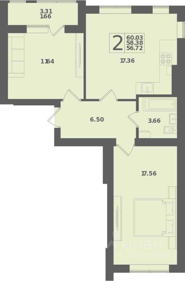 Общая площадь60,03 м2
