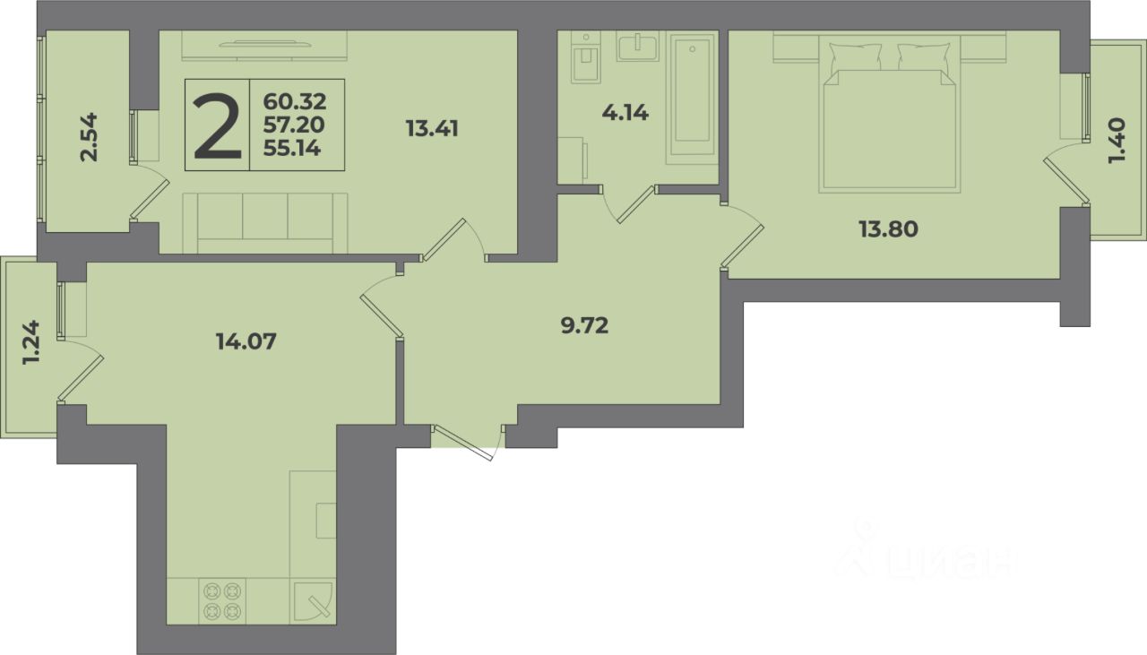 Общая площадь60,32 м2