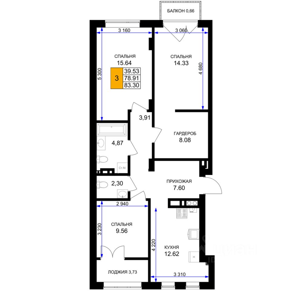 продам 3-к, Героя России Катериничева, 2 корп. 117 529 120 ₽