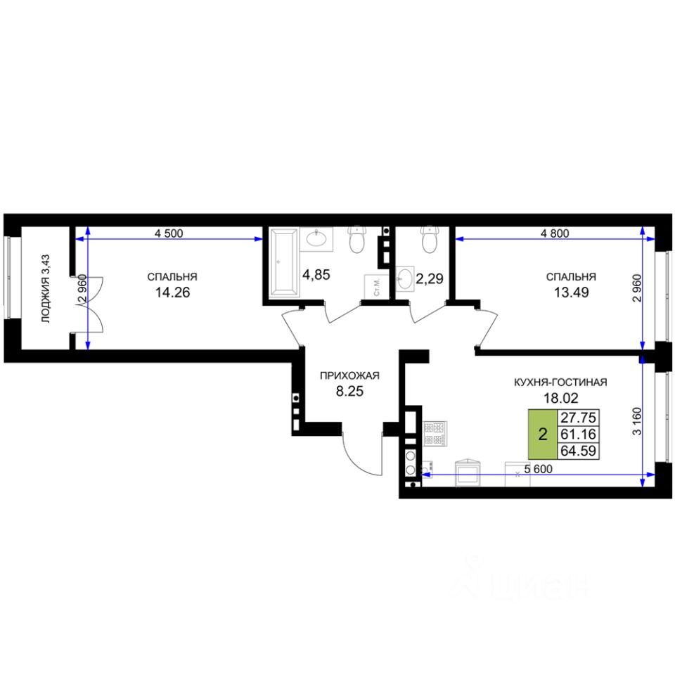 продам 2-к, Гурьевск13 671 000 ₽