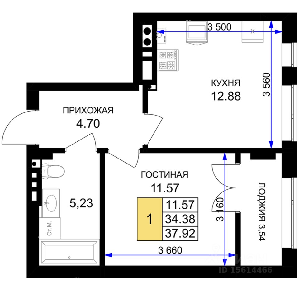 продам 1-к, Героя России Катериничева, 2 корп. 48 138 900 ₽