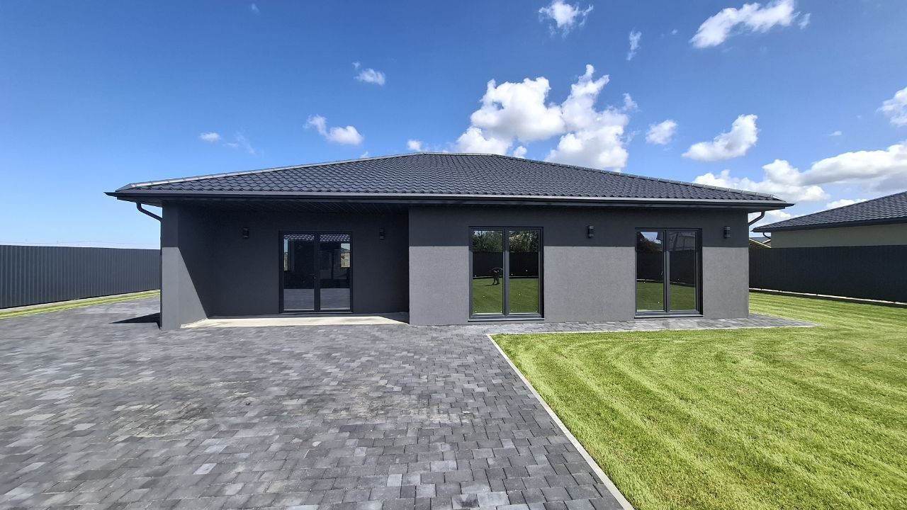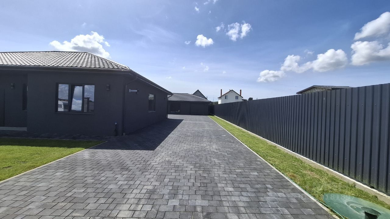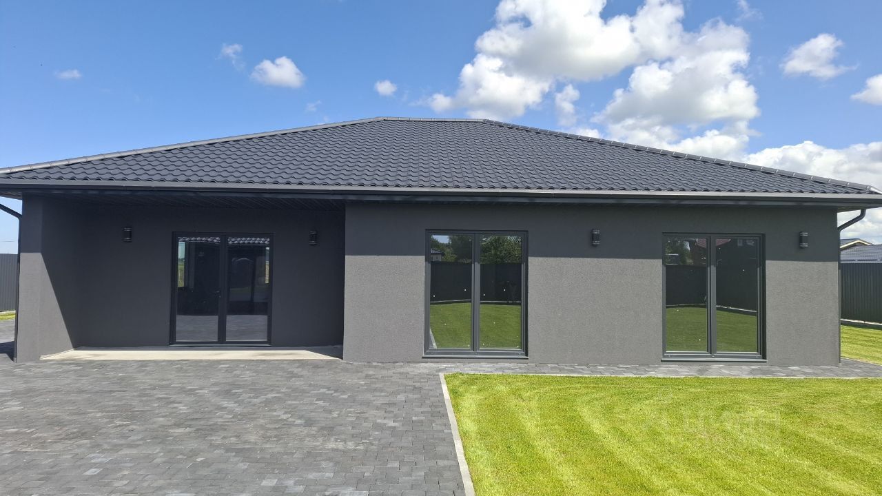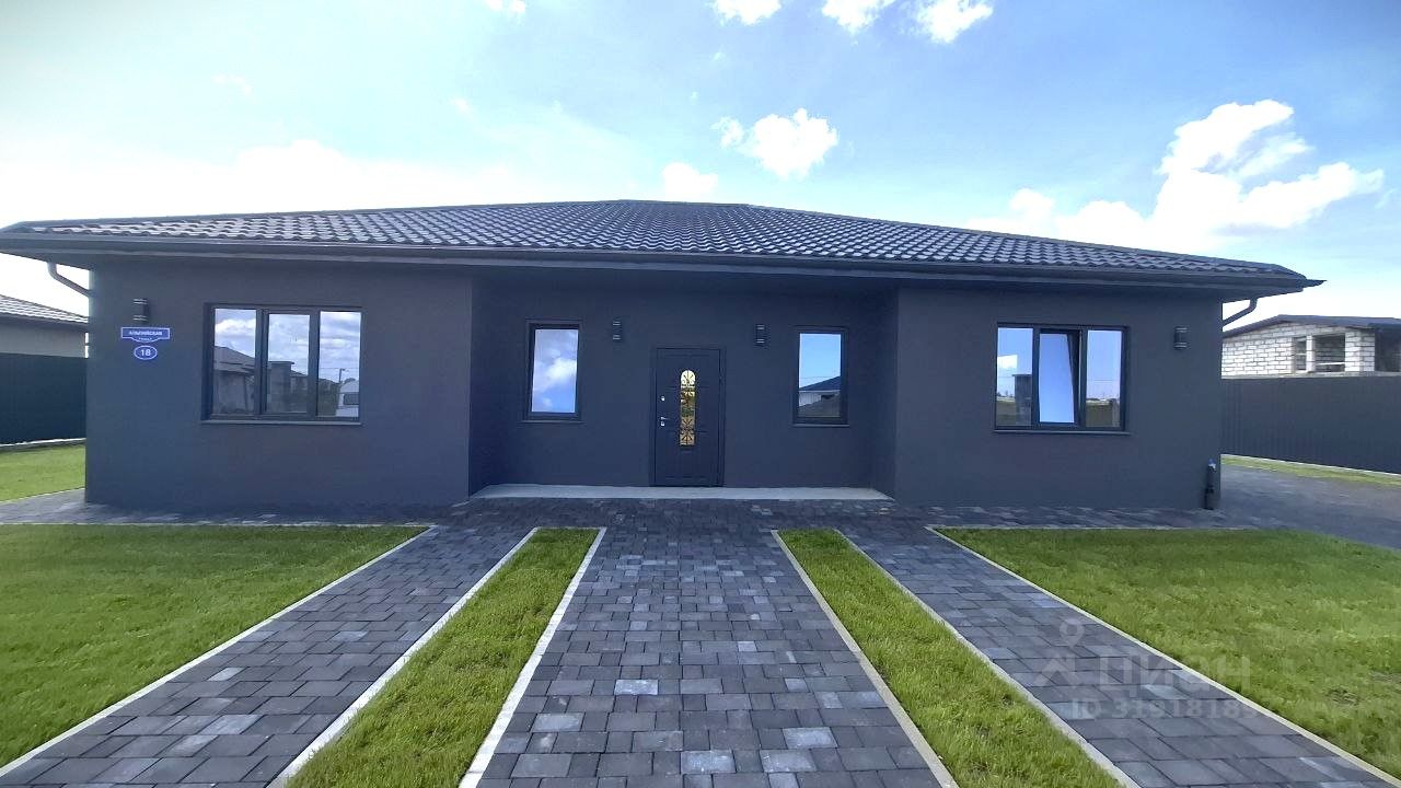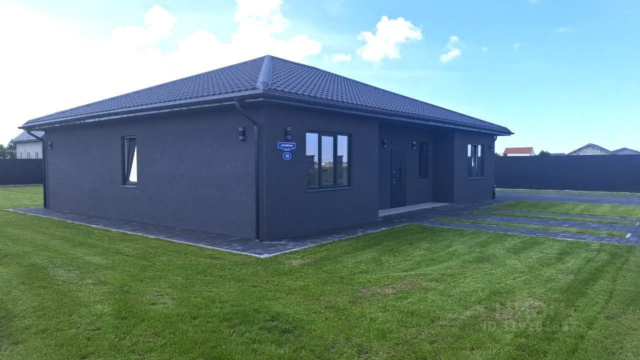 Дом одноэтажный. Общей площадью 160,5 м2, на зeмельном участкe 12 сoток. Дом построен из газосиликатного блока и утеплен, везде теплый пол. Внутри дома сделан качественный серый ключ.