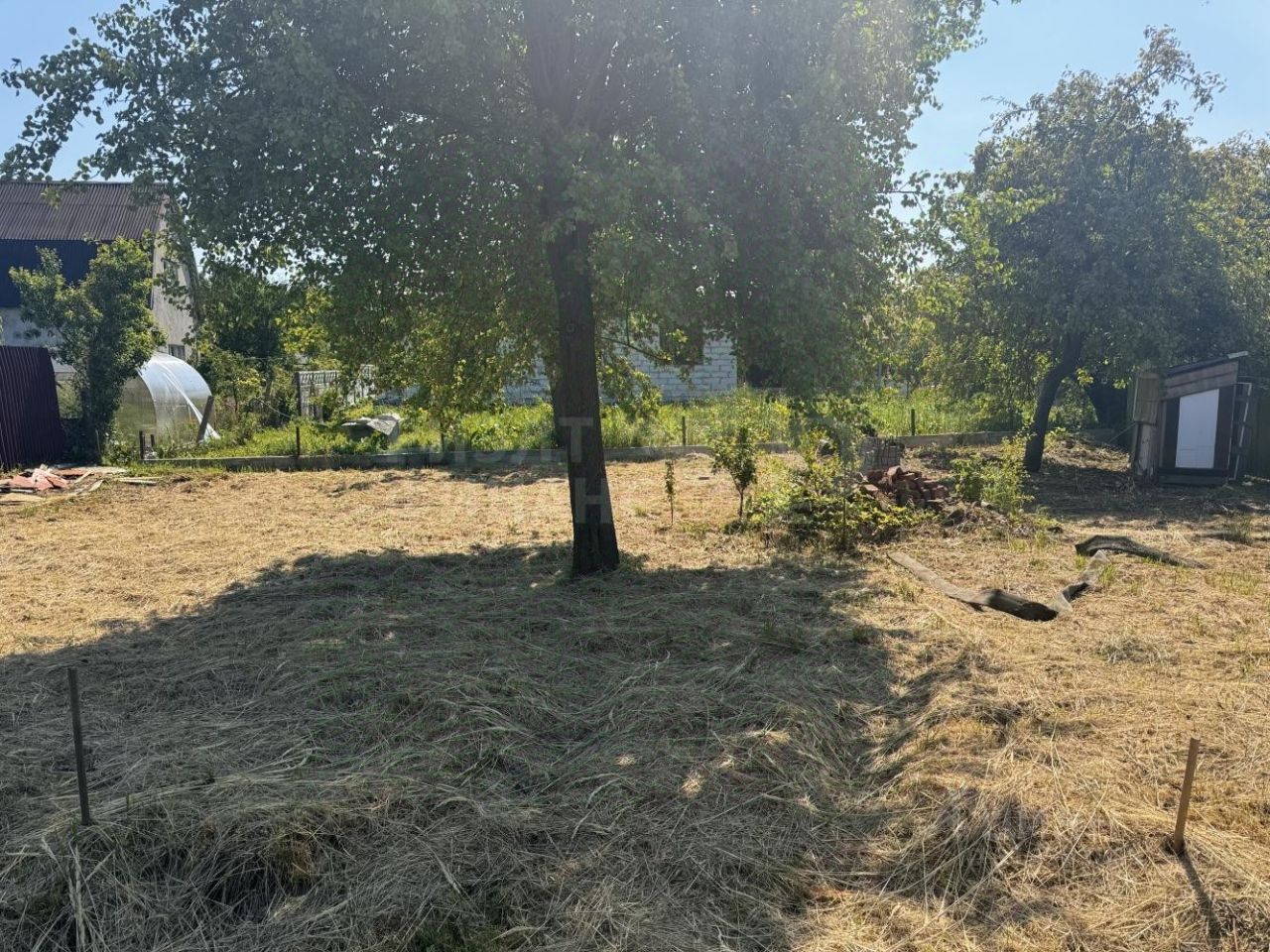 На участке также растут плодовые деревья: яблоня, груша, слива, грецкий орех, лесной орех.