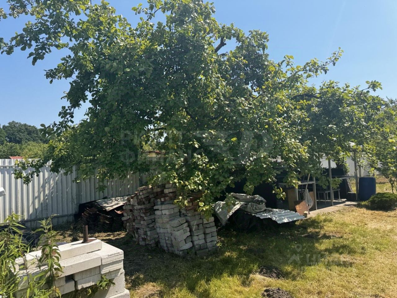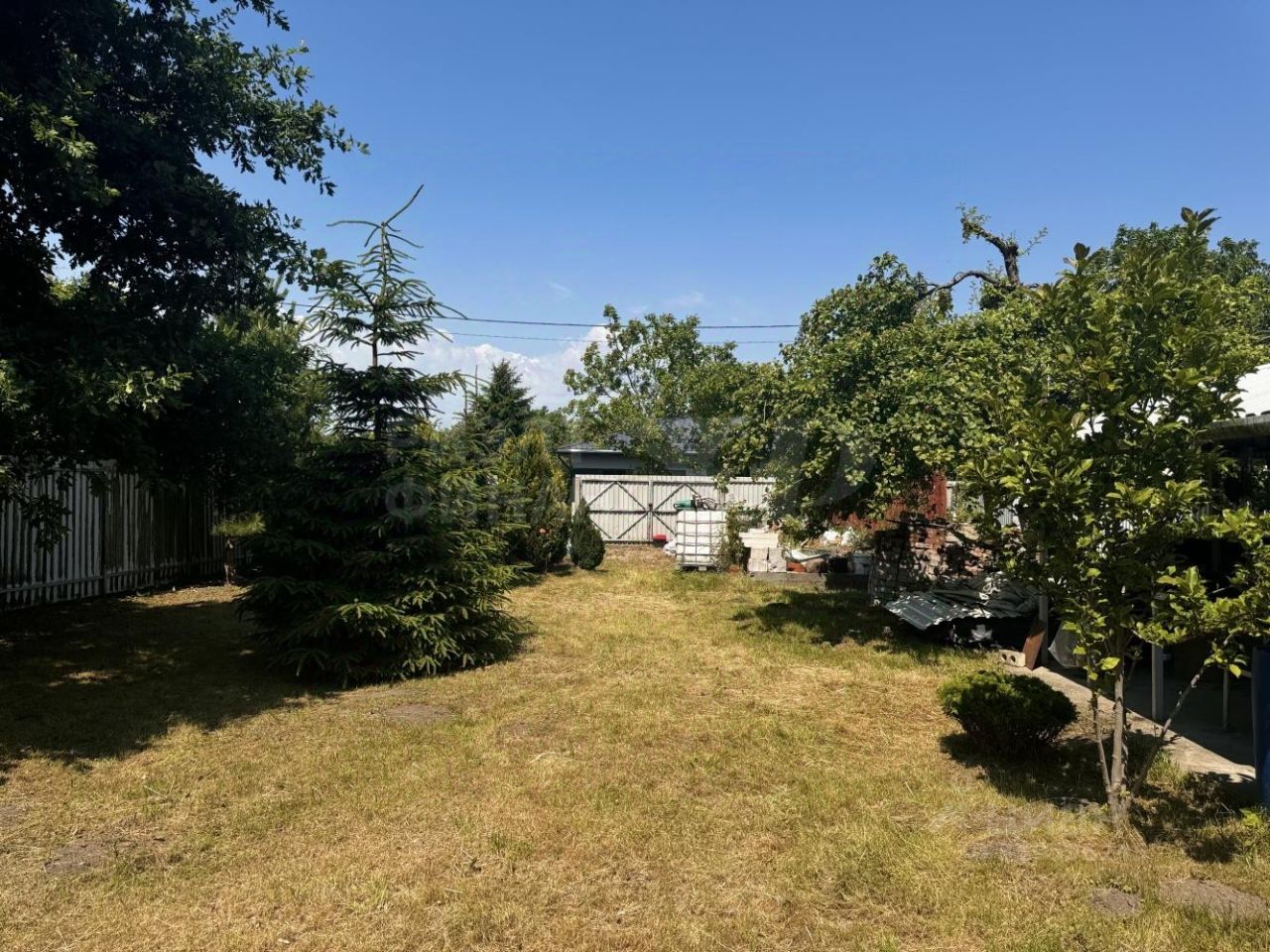 На участке также растут плодовые деревья: яблоня, груша, слива, грецкий орех, лесной орех.
