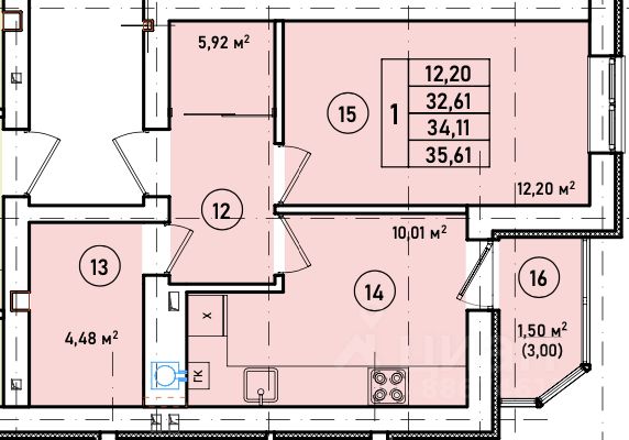 Продаётся 1-комнатная квартира в строящемся доме (Дом 1), срок сдачи: III-кв. 2026, общей площадью 34.11 кв.м., на 2 этаже. Современный жилой 7-ми этажный дом в сердце города.