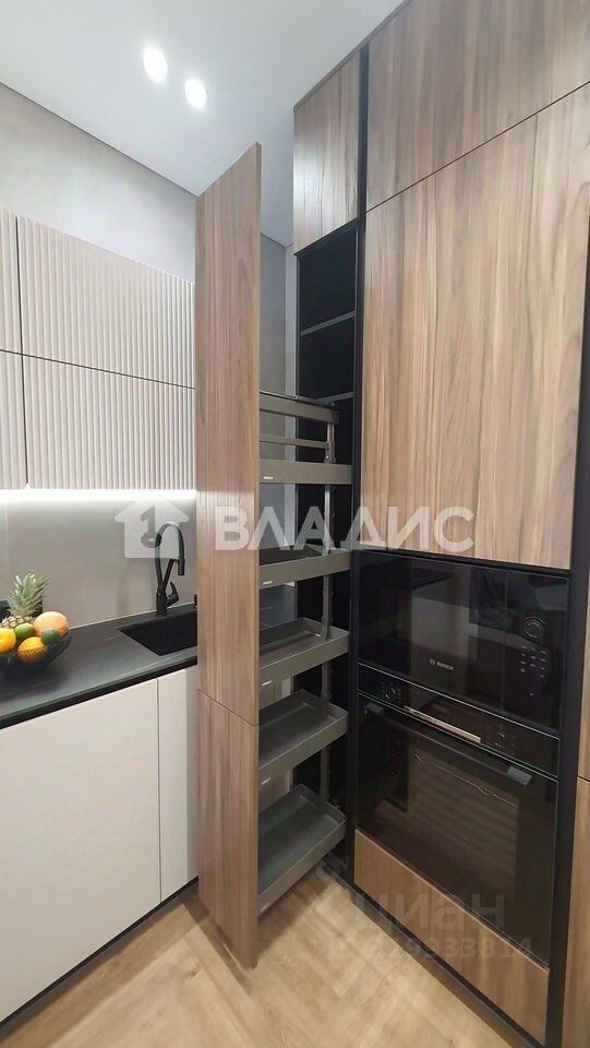 Красивый и качественный кухонный гарнитур, НРL столешница, встроенная техника Воsсh (холодильник, посудомоечная машина, микроволновая печь, индукционная варочная поверхность, духовой шкаф), огромный выдвижной шкаф-пенал, система очистки воды с обратным осмосом. Вся мебель сделана по индивидуальному заказу из МДФ и ЛДСП Еggеr , дизайнерские тумбы с крашенными фасадами. Диван и кровать производство Польша. Качественный ортопедический матрас. Сантехника европейских производителей Тесе, Оmnirеs, система защиты от протечек.