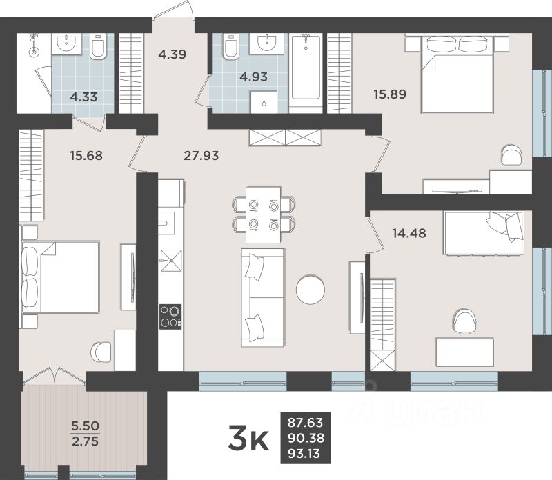 Общая площадь90,38 м2