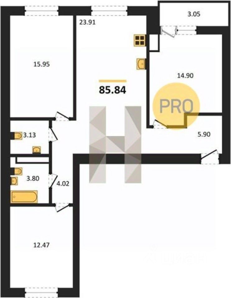 Квартира: 3 к 85,84 кв.м., 6 этаж в комплексе Родина, 8 очередь, корп.8, сдача: 3кв. , этажей: 8, адрес Калининград г., Коммунистическая ул., , Застройщик: Модуль-Стройград. Номер в базе: J29620L24946