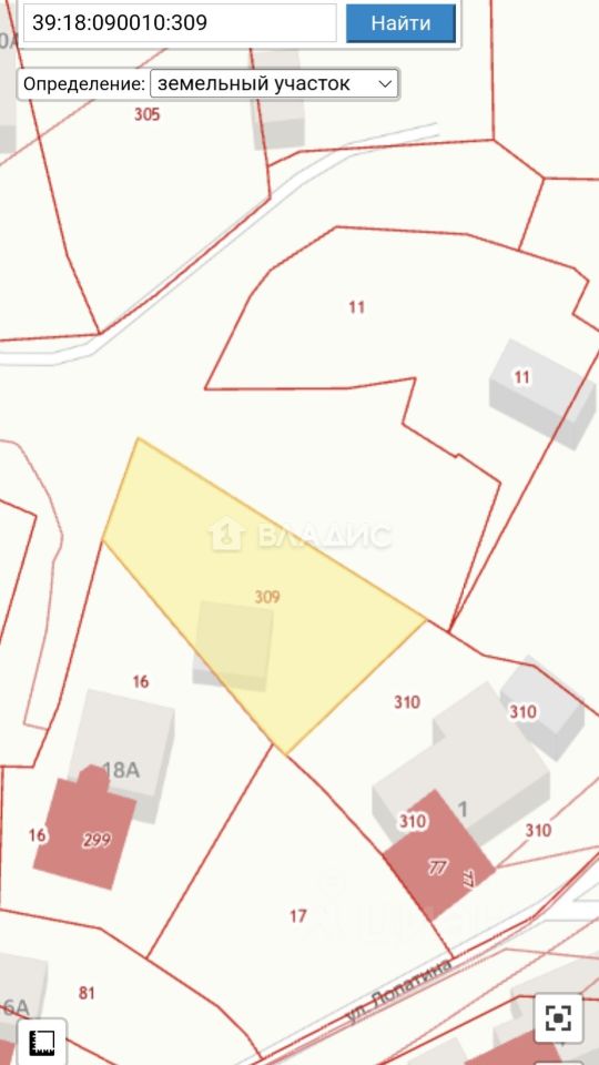 Кадастровый номер: 39:18:090010:309