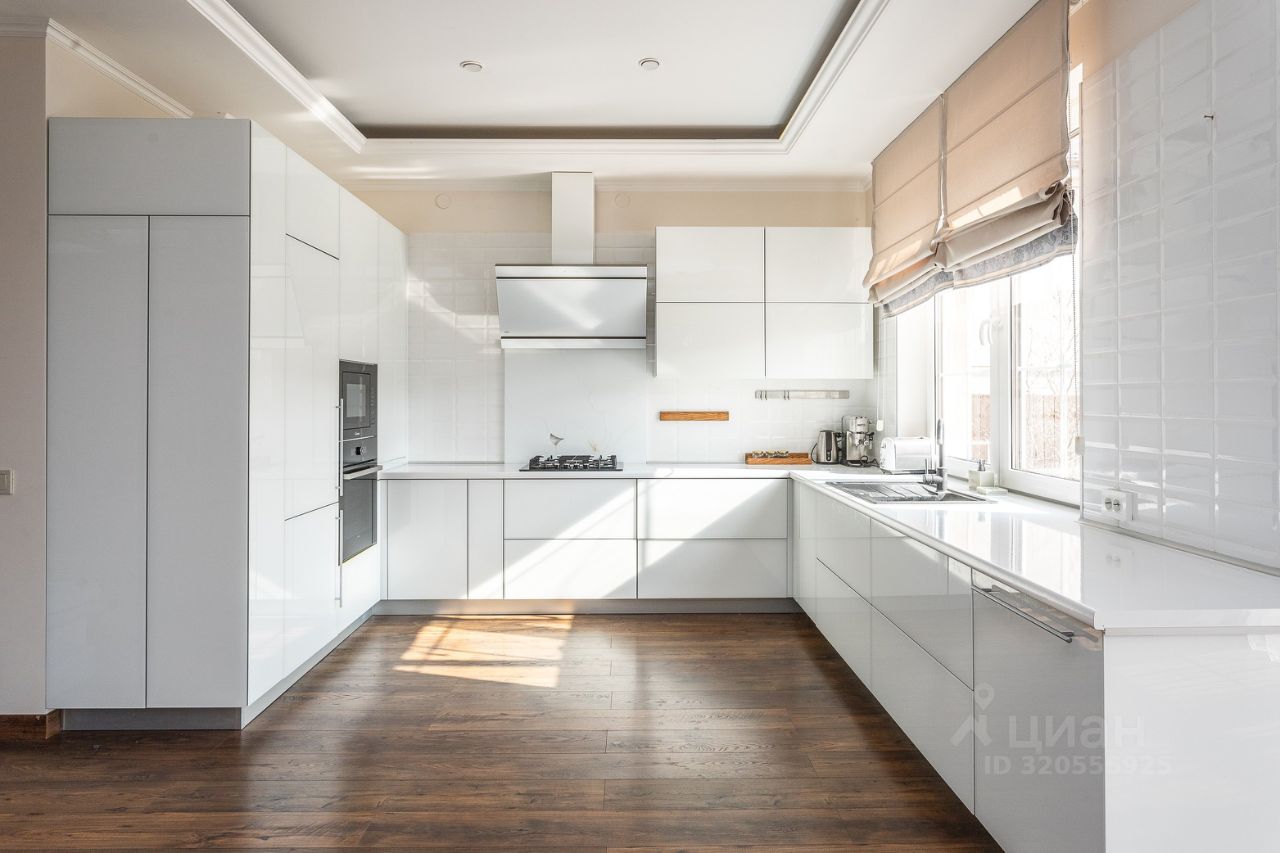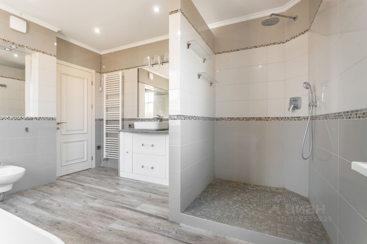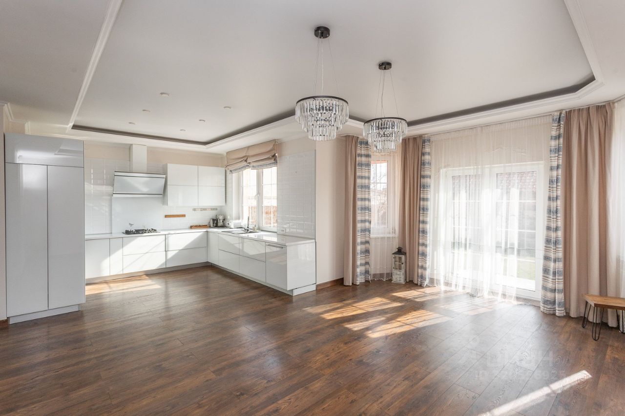 На первом этаже располагается просторная кухня-гостиная со встроенной техникой премиум класса, с кладовым помещением и сан.узлом. Большая гостиная комната с камином и выходом на террасу, где вы можете насладиться утренним кофе.