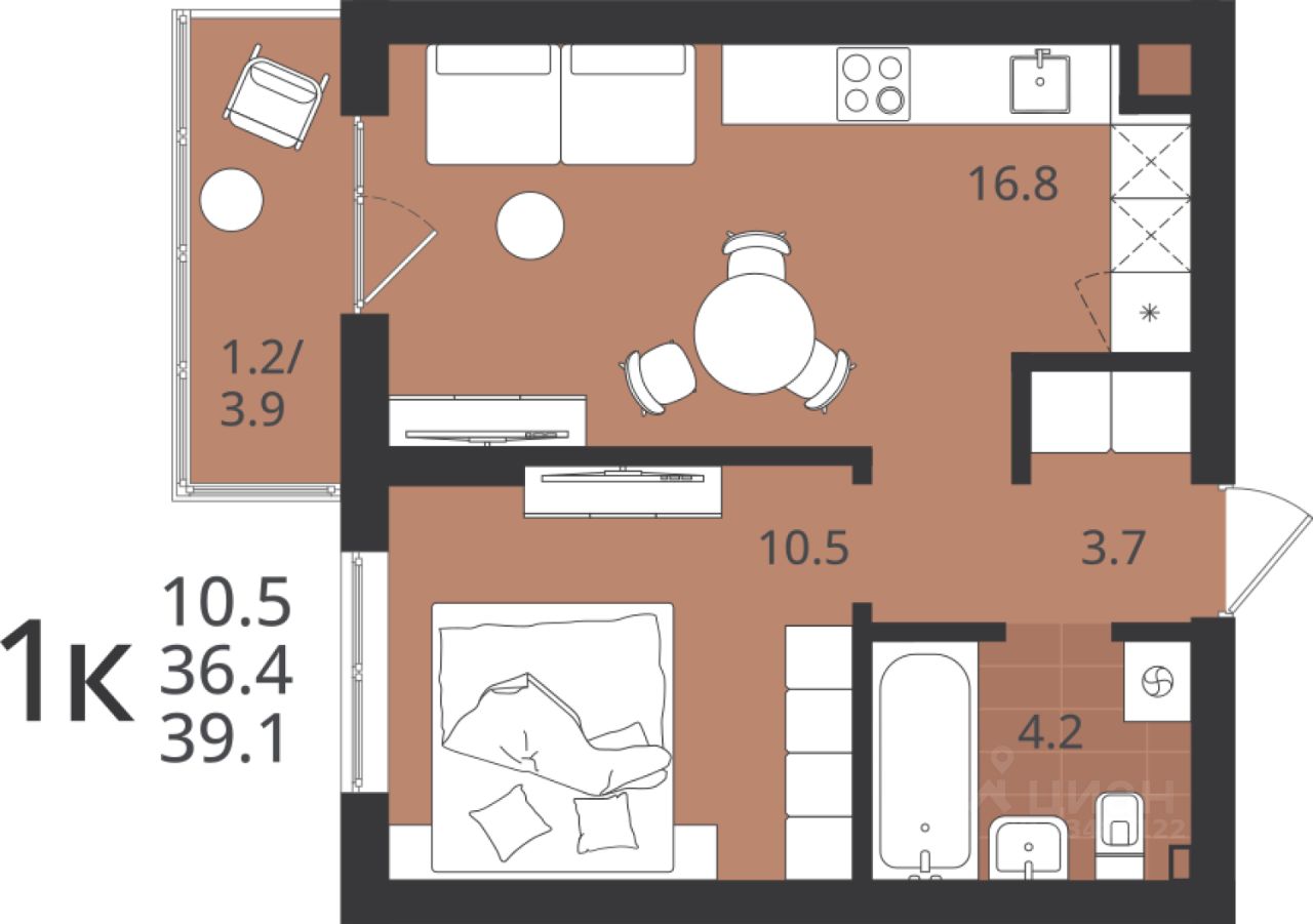 продам 1-к квартира6 988 800 ₽
