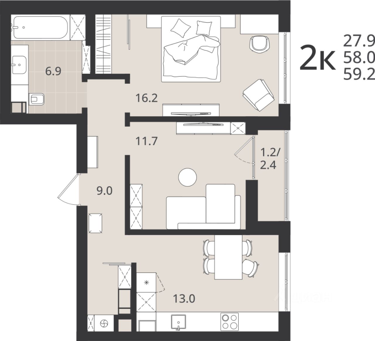 Общая площадь58 м2