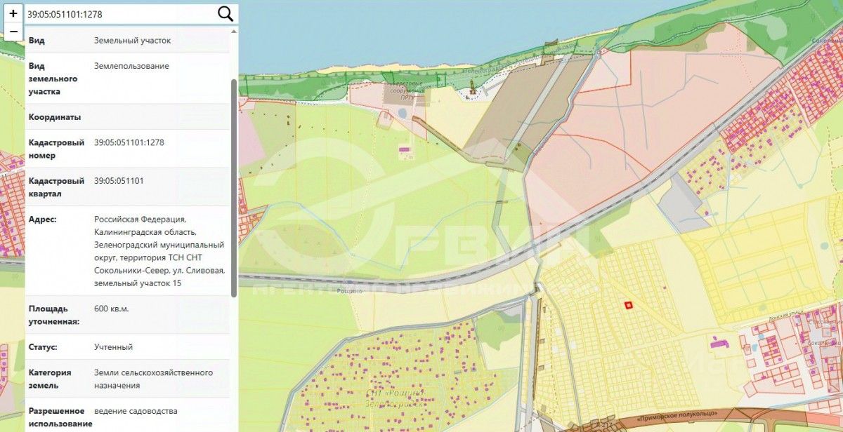 Продается земельный участок в СНТ Сокольники-Север, ул. Сливовая. Кадастровый номер: 39:05:051101:1278.