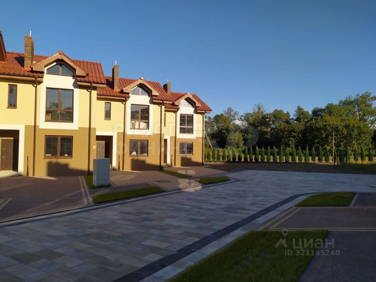 Территория таунхауса огорожена и озеленена.