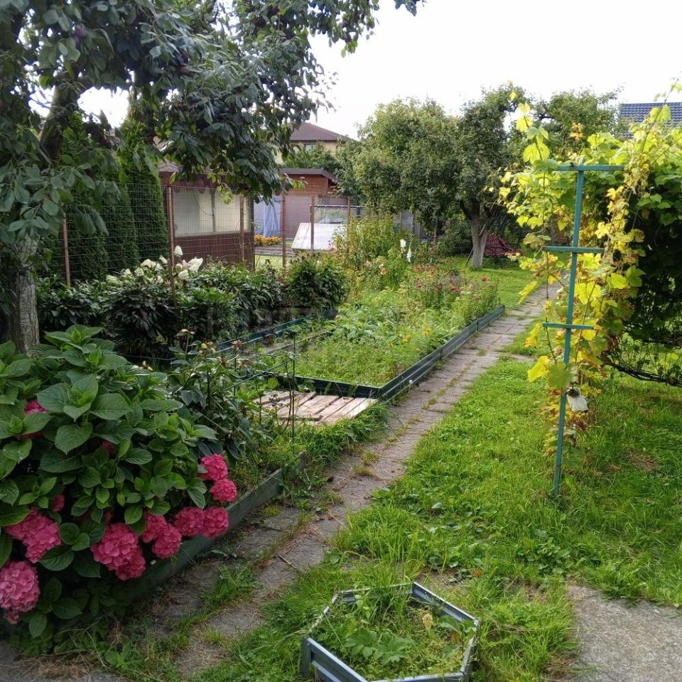Продаётся дача 50 кв.м. на участке 5,84 сотки в г. Калининграде, СНТ Вишневый сад (ориентир 1-я Большая окружная). В кирпичном доме две комнаты с мебелью, обустроенная кухня, при входе в дом большая деревянная веранда 20 кв.м. Участок, ровный, сухой, прямоугольной формы. Вода- абиссинская скважина, канализация - септик. Удобная кладовая. На участке: туалет(септик), качели, мангал, небольшие деревянные грядки, плодовые кустарники и деревья (яблоня, слива, смородина, виноград), цветы. Территория участка огорожена, со стороны въезда стоят откатные ворота, парковочное место на две машины. Газ проходит по границе участка. Дорога подсыпная гравием. Въезд в общество с двух сторон, в конце улицы шлагбаум, через который можно выехать на ул, 1-я Большая Окружная В шaговой доступности находятся остановки общественного транспорта, магазины, аптека, конный клуб ''Каприоль'', форт 5, кафе.