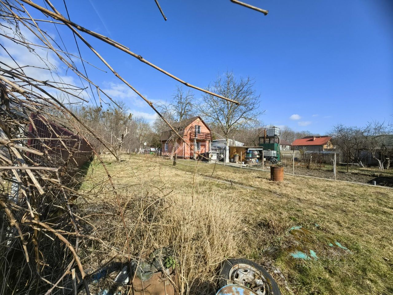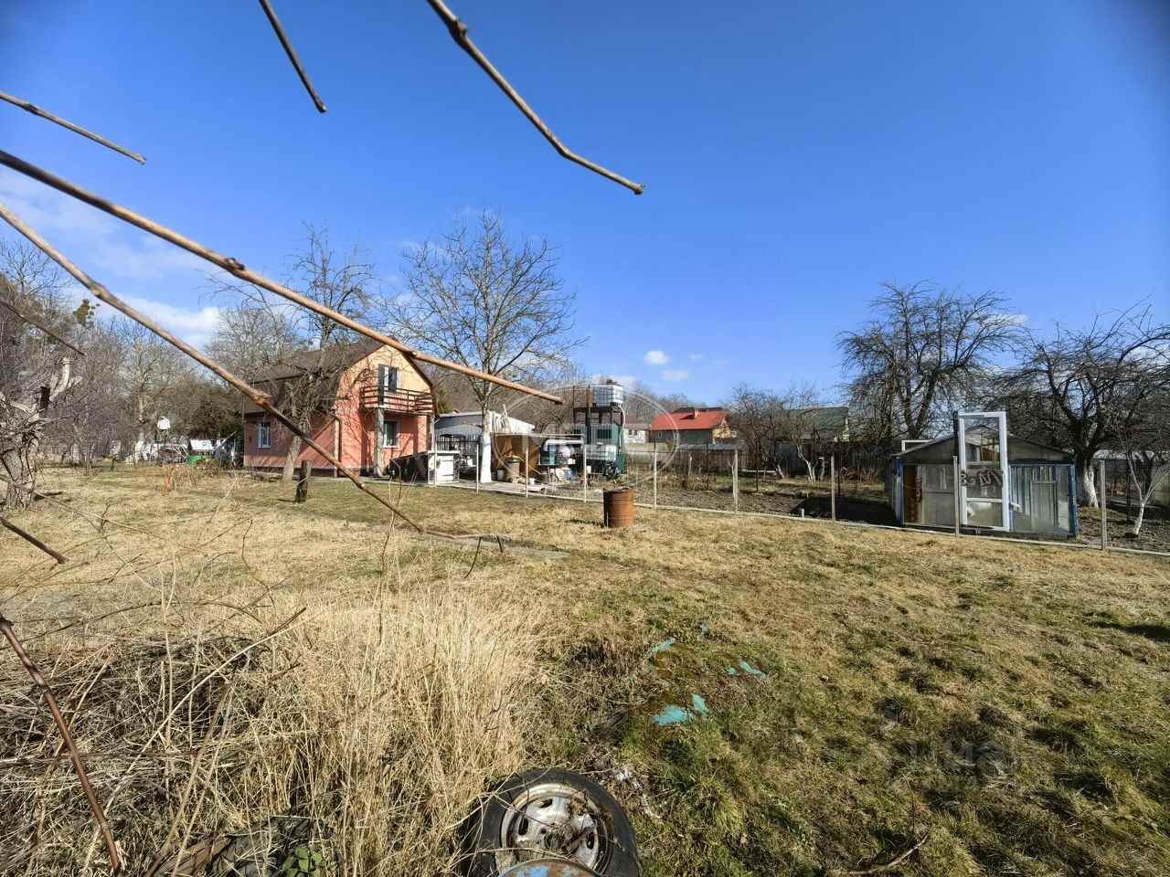 Преимущества: - Электричество: столб находится всего в метре от участка, свет уже подключен. - Газ: подключен у соседей (прилегающий участок), использовался более 3 лет. - Возможность подключения интернета. - На территории растут плодовые деревья и кустарники. - Имеется домик с печкой, сарай, теплица и ручей.